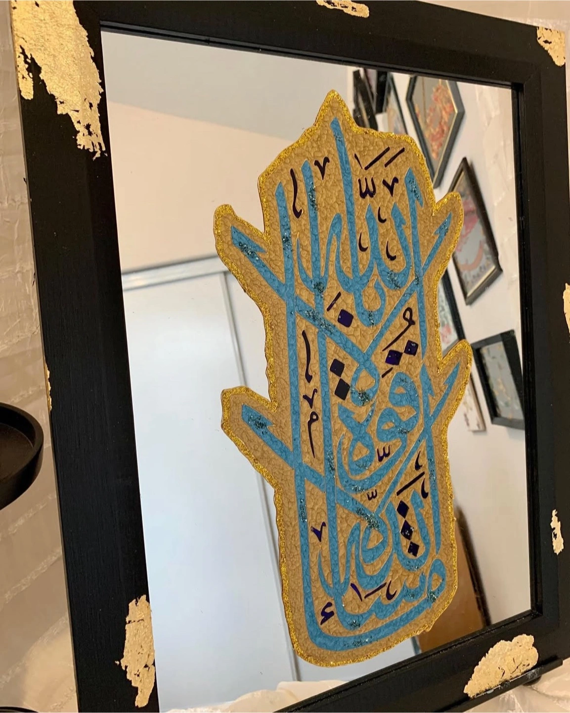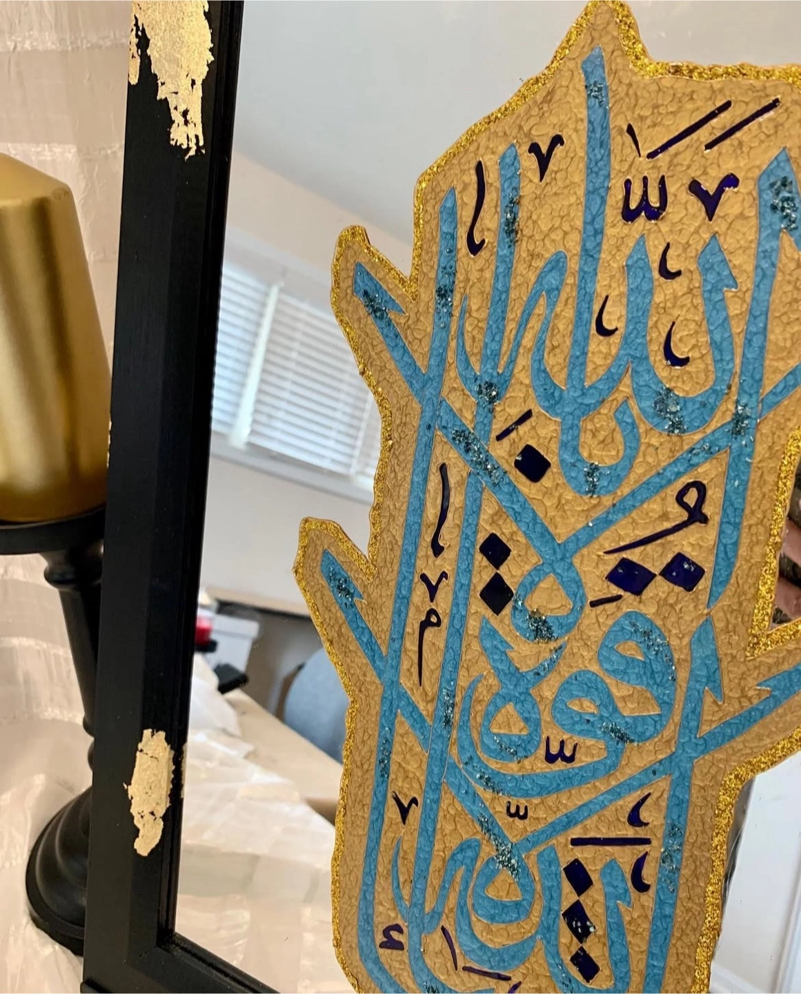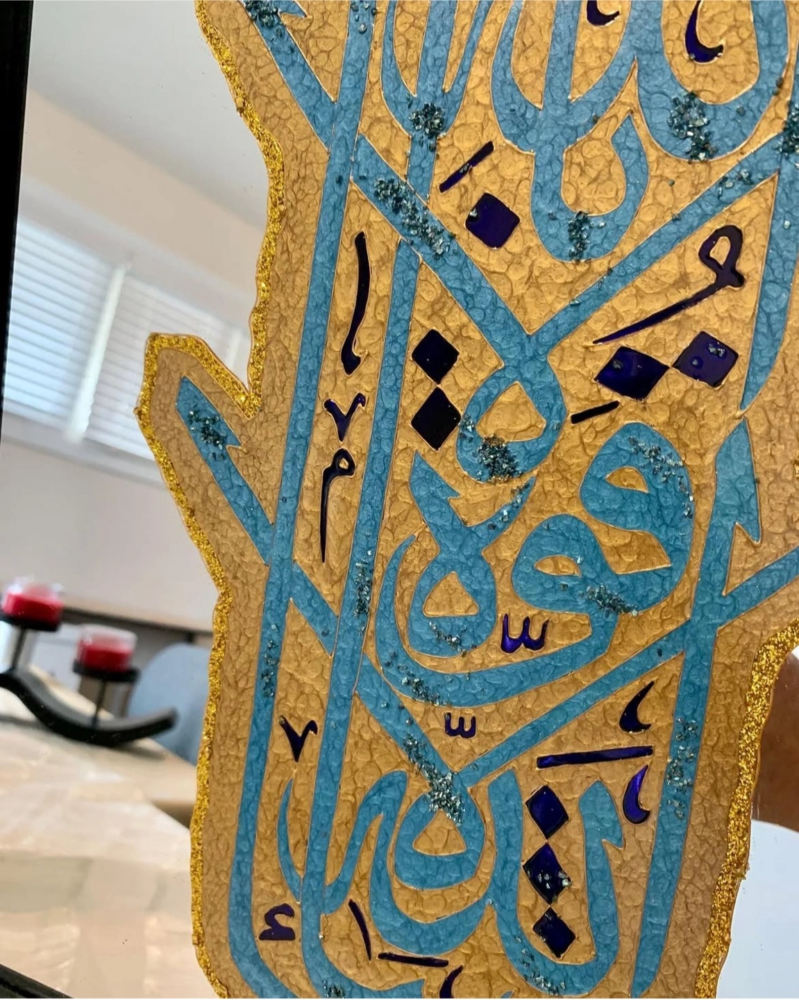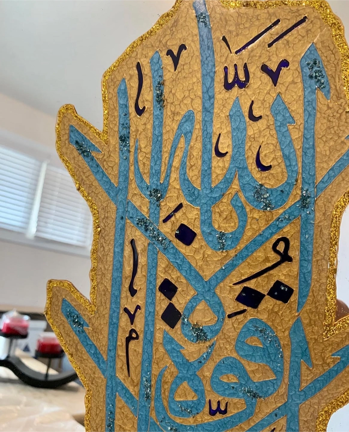 Islamic Calligraphy Art. Handmade glass art- painted with permanent glass paints and out liners.NEW.