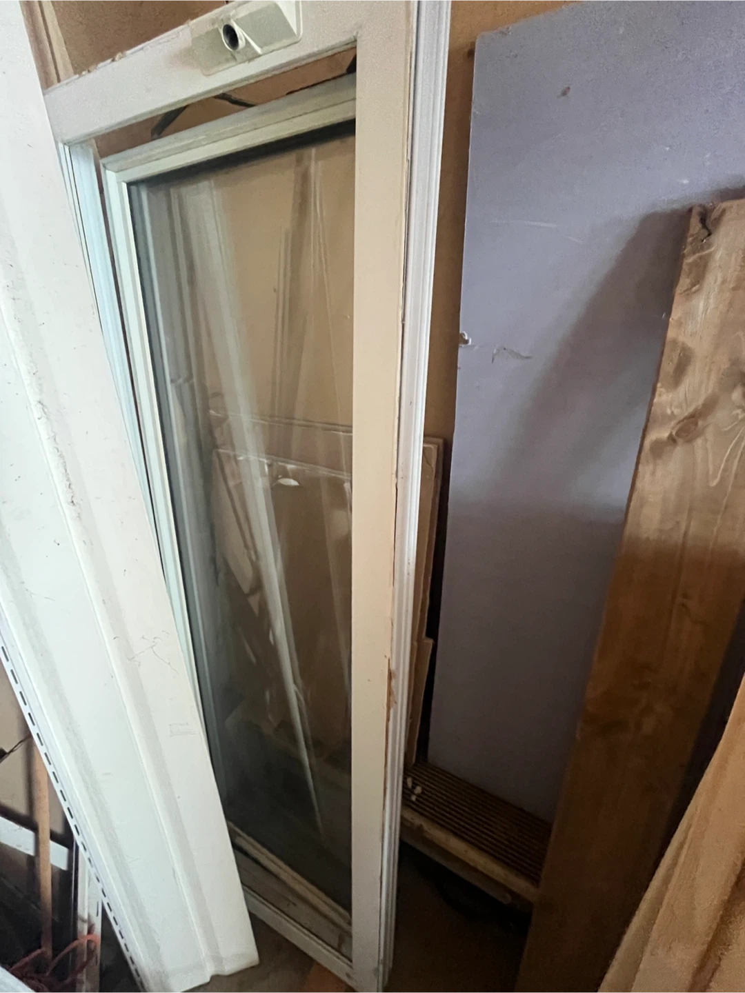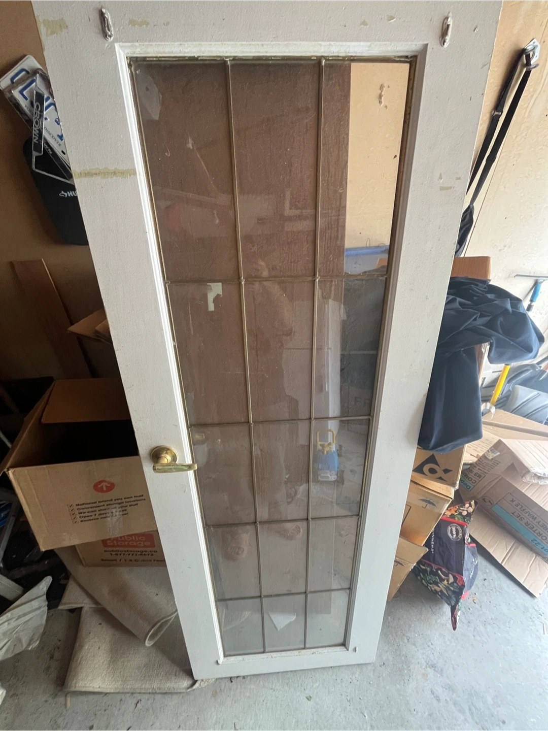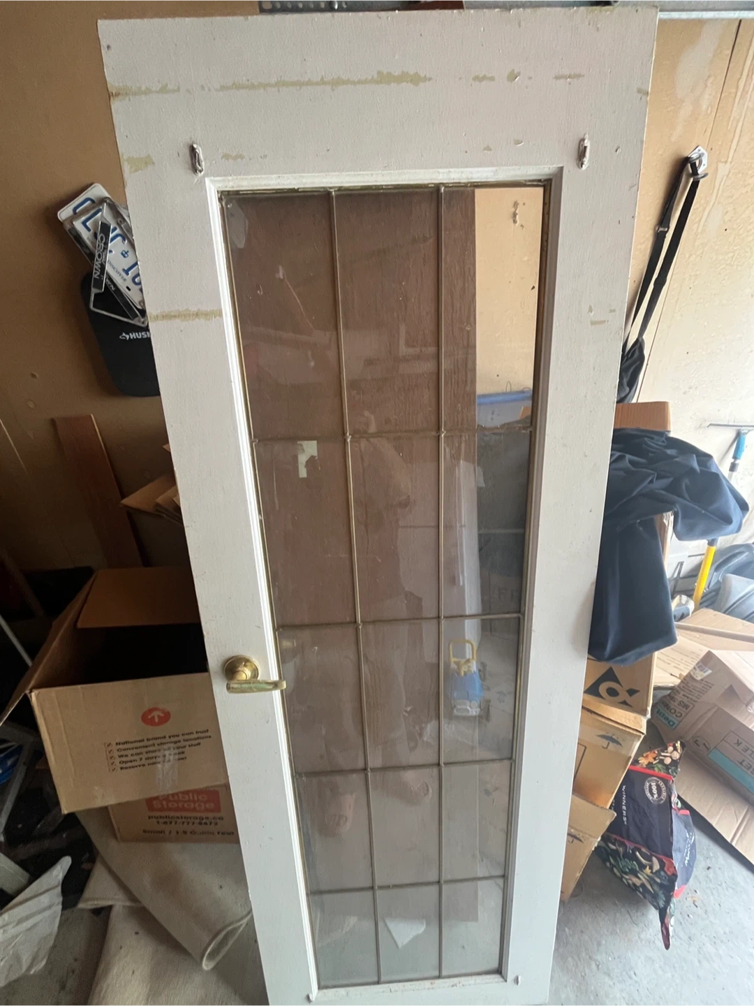 Selling a used interior door with a glass panel. It has a white frame and a brass handle. Great for adding a touch of elegance to any room! Pickup southwood lakes