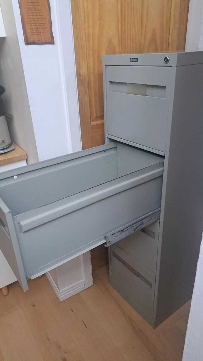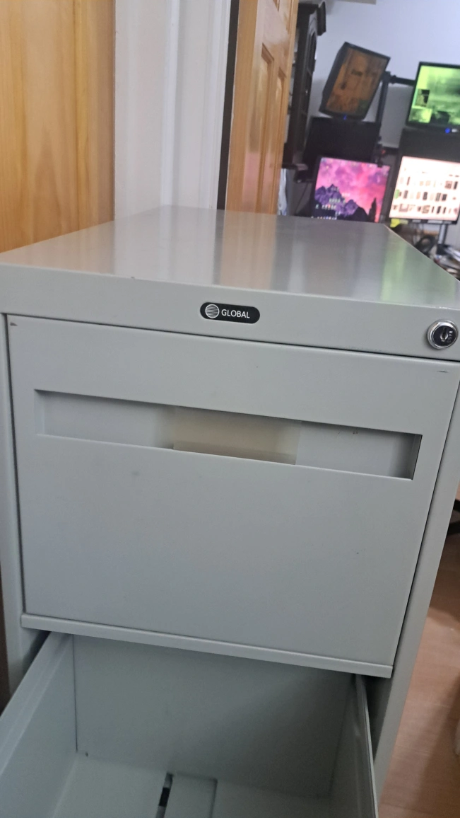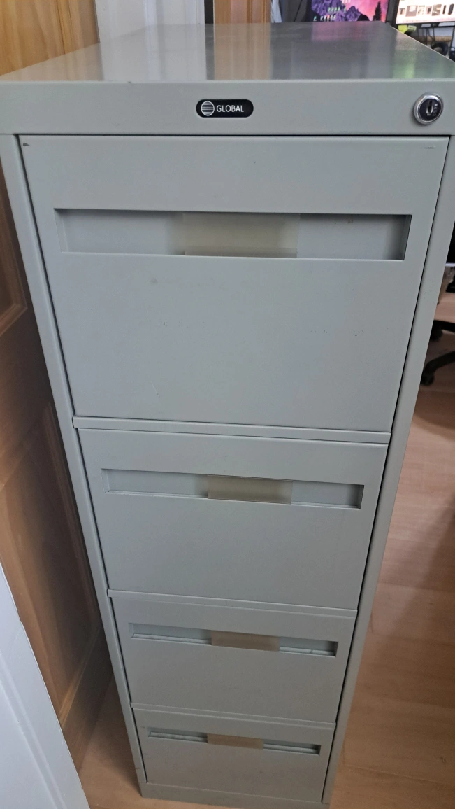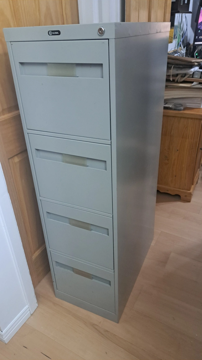 Selling a grey filing cabinet from Global. It has four drawers and is in good condition! Perfect for organizing your home office or workspace Dimensions: 15" wide x 26.5" deep x 52" high