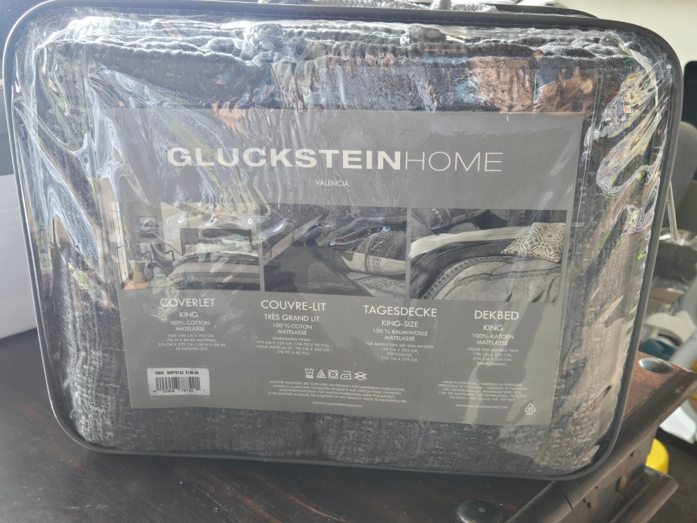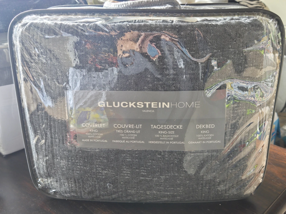 Selling a brand new GlucksteinHome Valencia coverlet set in King size! It's still in the original packaging. The coverlet is 100% cotton. Made in Portugal