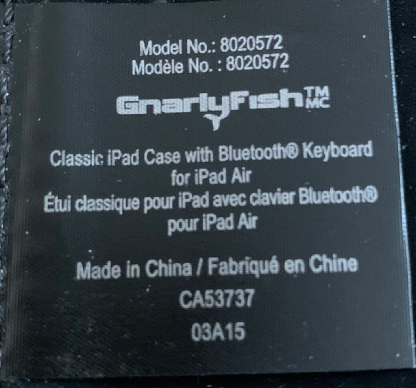 Selling a GnarlyFish Classic iPad Case with Bluetooth Keyboard for iPad Air. It comes with a charger. Model No.: 8020572
