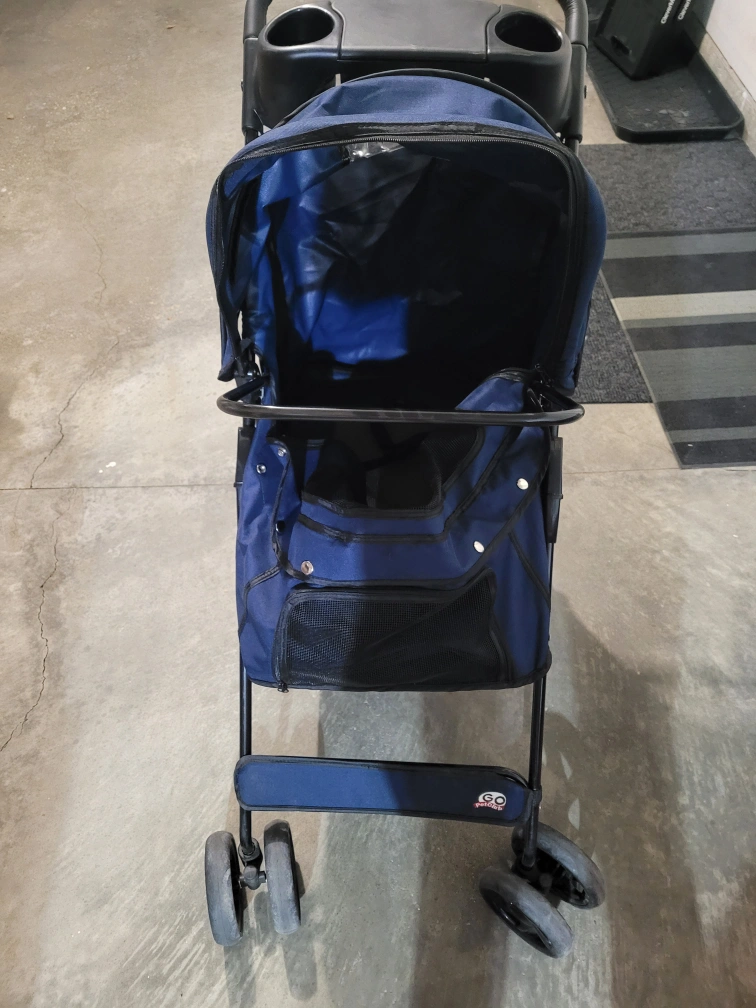 Selling a GO PetClub pet stroller, model PSB001. It's blue and comes in the original box.