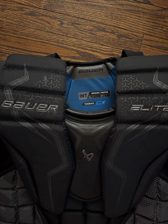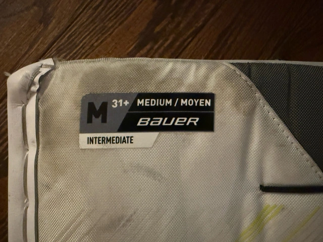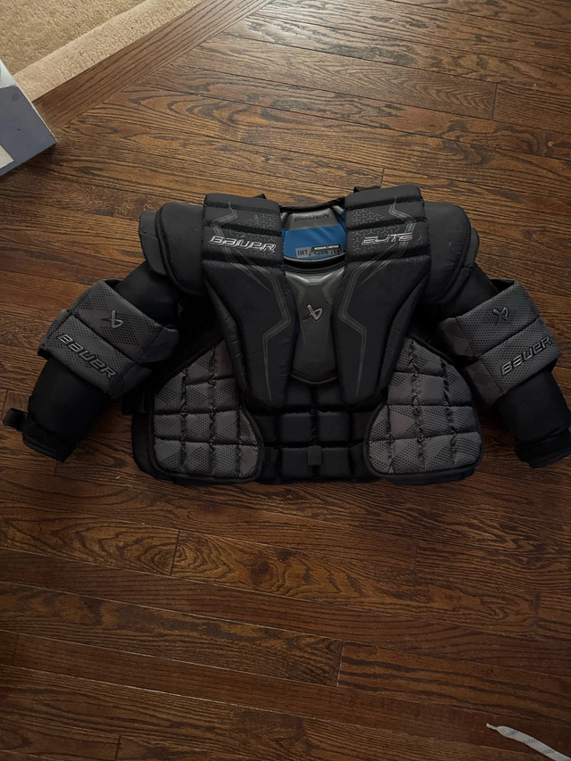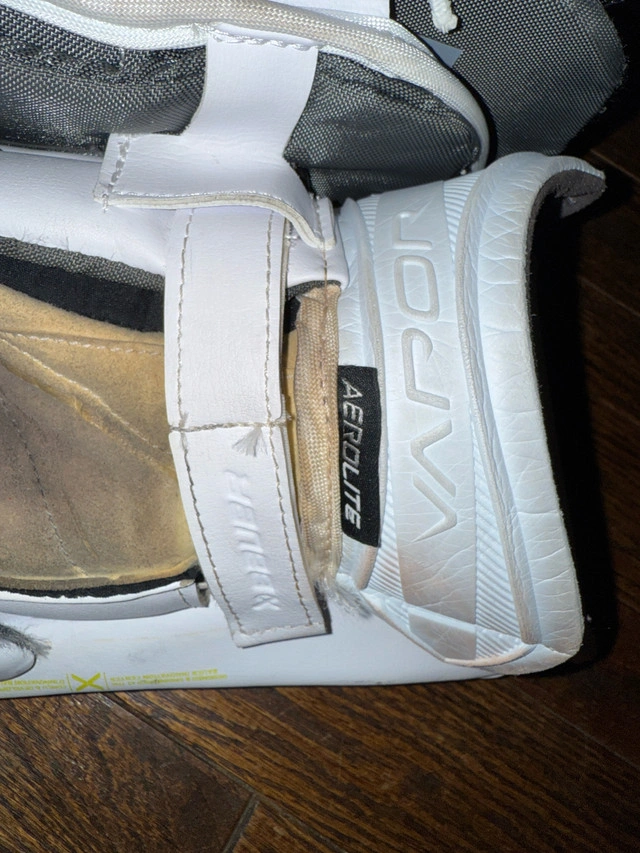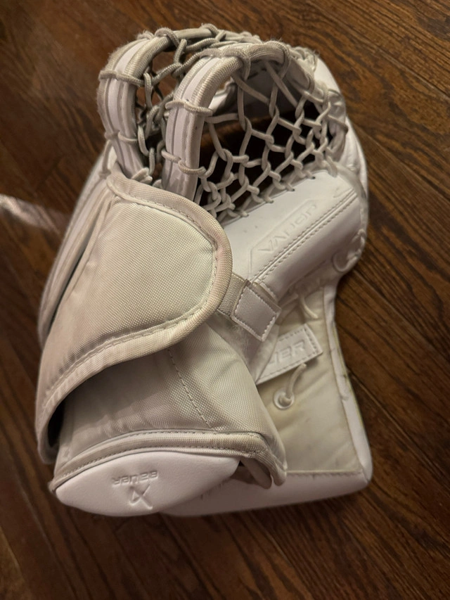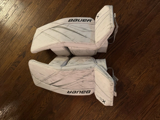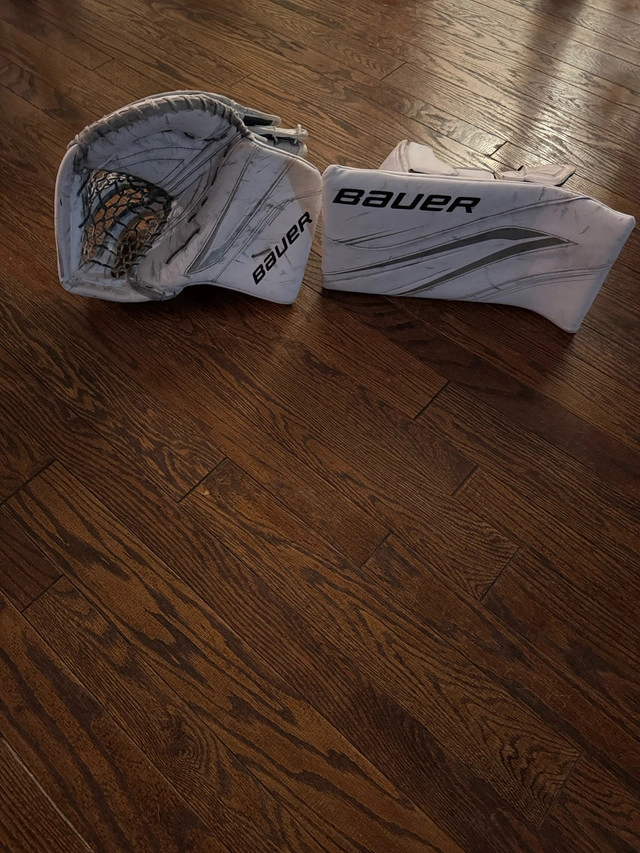Bauer Vapor x5 pro pads intermediate medium 31+ all white, new last year only used for half the season. Great condition. Bauer Vapor x5 pro glove intermediate medium all white, new last year only used for half the season. Great condition. Bauer Vapor x5 pro blocker intermediate medium all white, new last year only used for half the season. Great condition. Bauer elite chest protector intermediate medium new last year only used for half the season. Great condition.