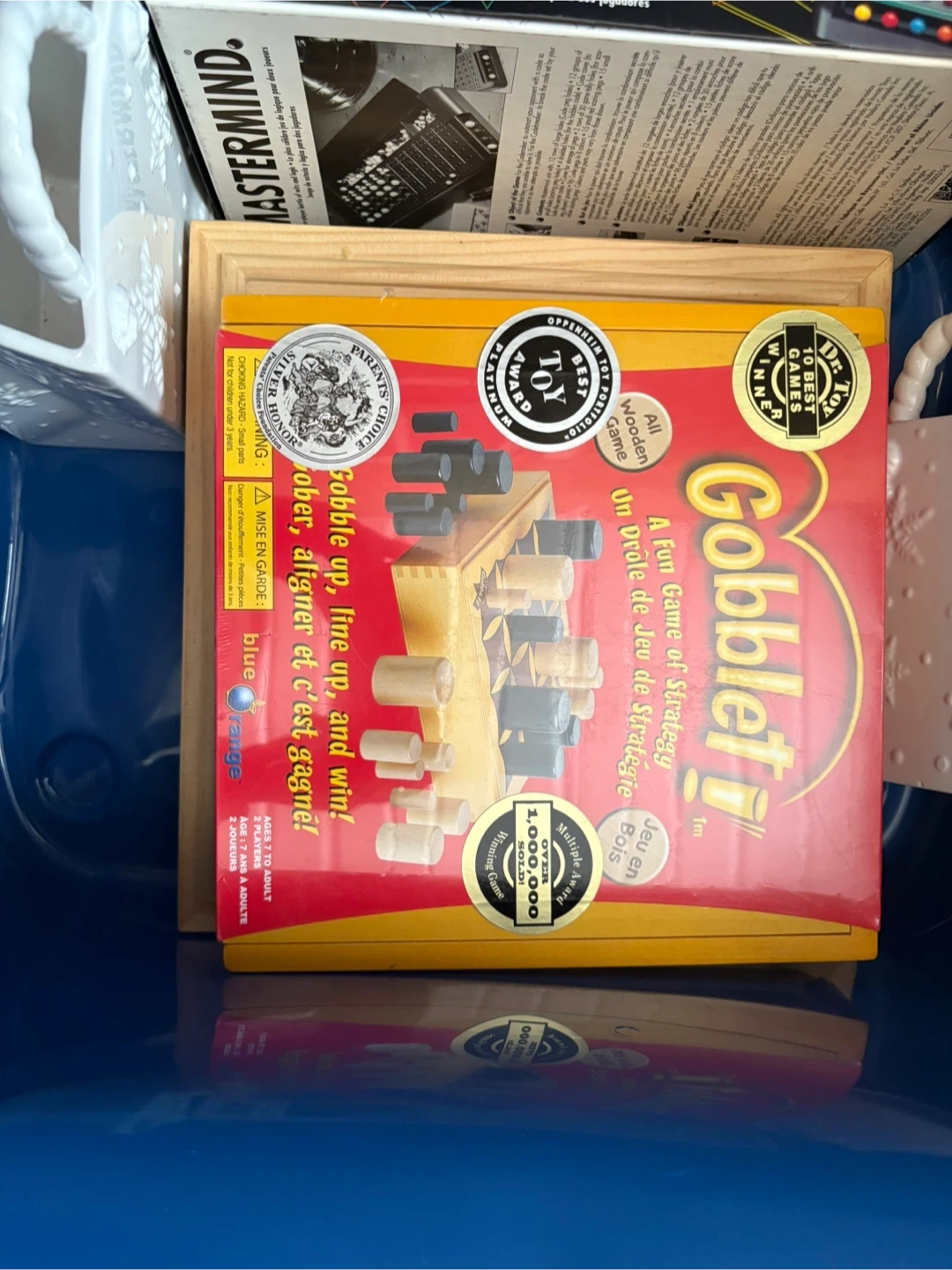Selling a Gobblet board game! It's a fun game of strategy for 2 players. The goal is to line up four in a row. Suitable for ages 7 to adult. A great addition to any game collection!