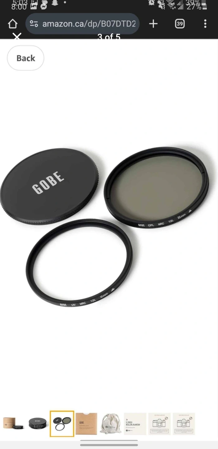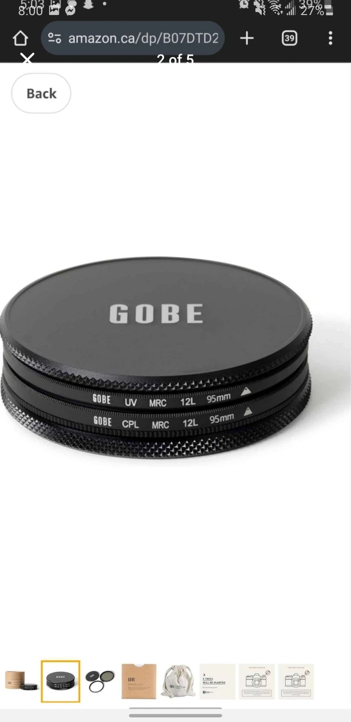 Brand New Gobe 95mm UV + Circular Polarizing (CPL) Lens Filter Kit (1Peak) Openbox Sealed inside Never used New If you're interested please message for further details Thanks