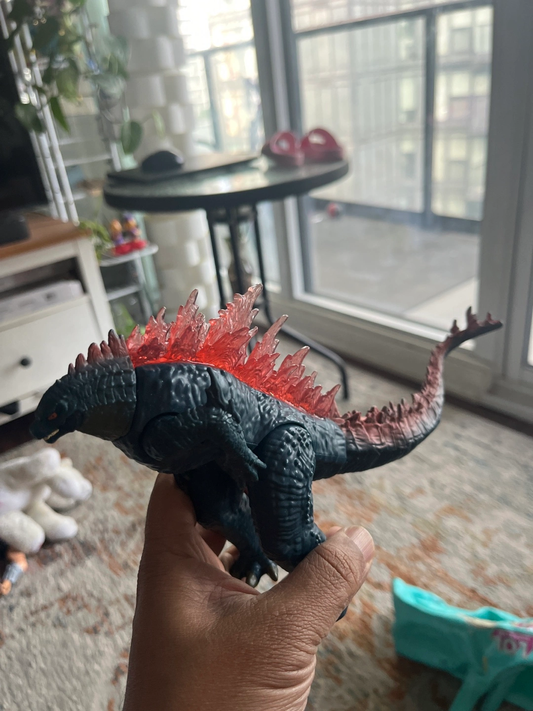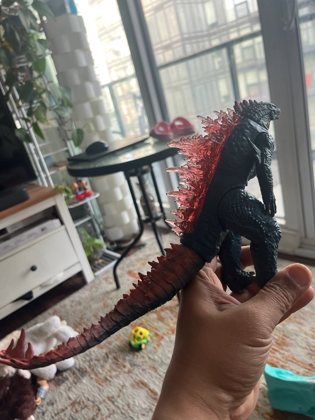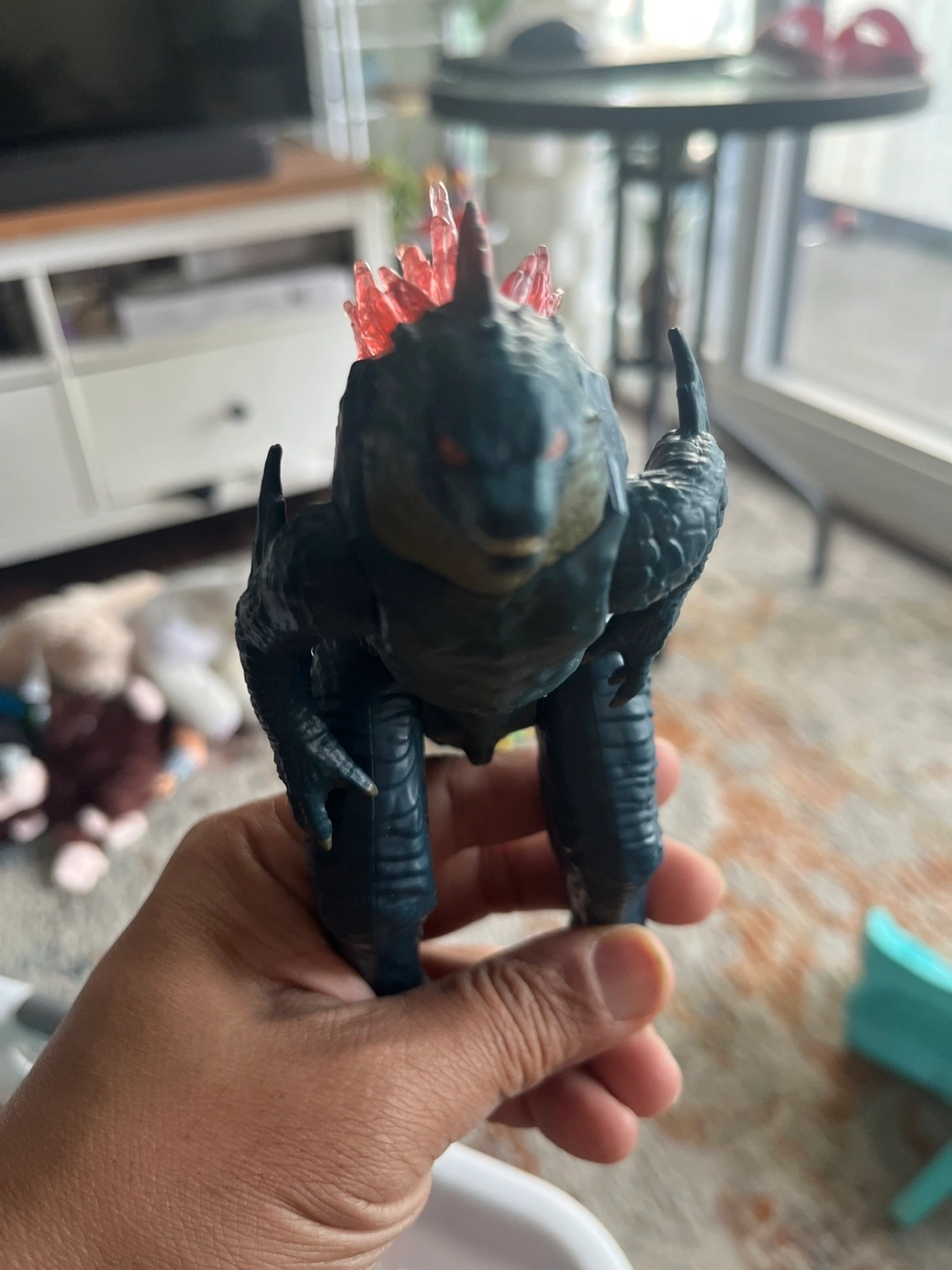 Selling a Godzilla action figure. It has a cool design with red dorsal fins and a long tail. Great for collectors or kids who love Godzilla!