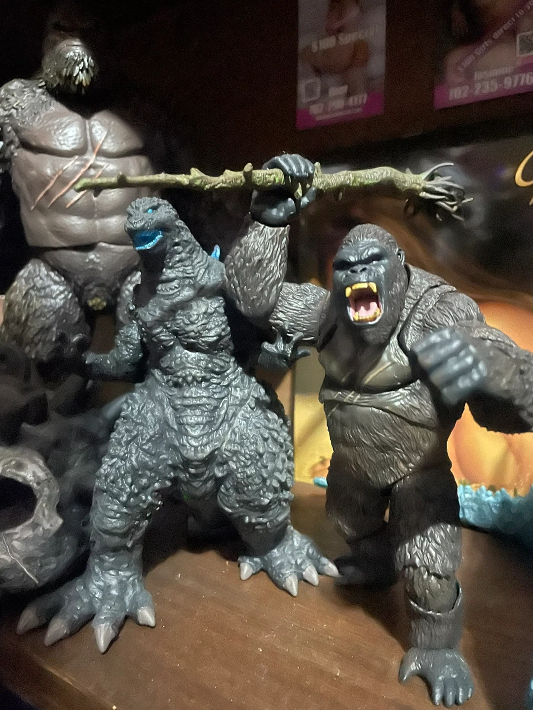 Selling a set of Godzilla and Kong action figures. They are in great shape Perfect for any fan of the movies! The Kong$40 and Zilla($40) action figures are from Hiya toys Giant Kong($35) is from McFarlane toys comes with tiny Batman and different head 100$ for all