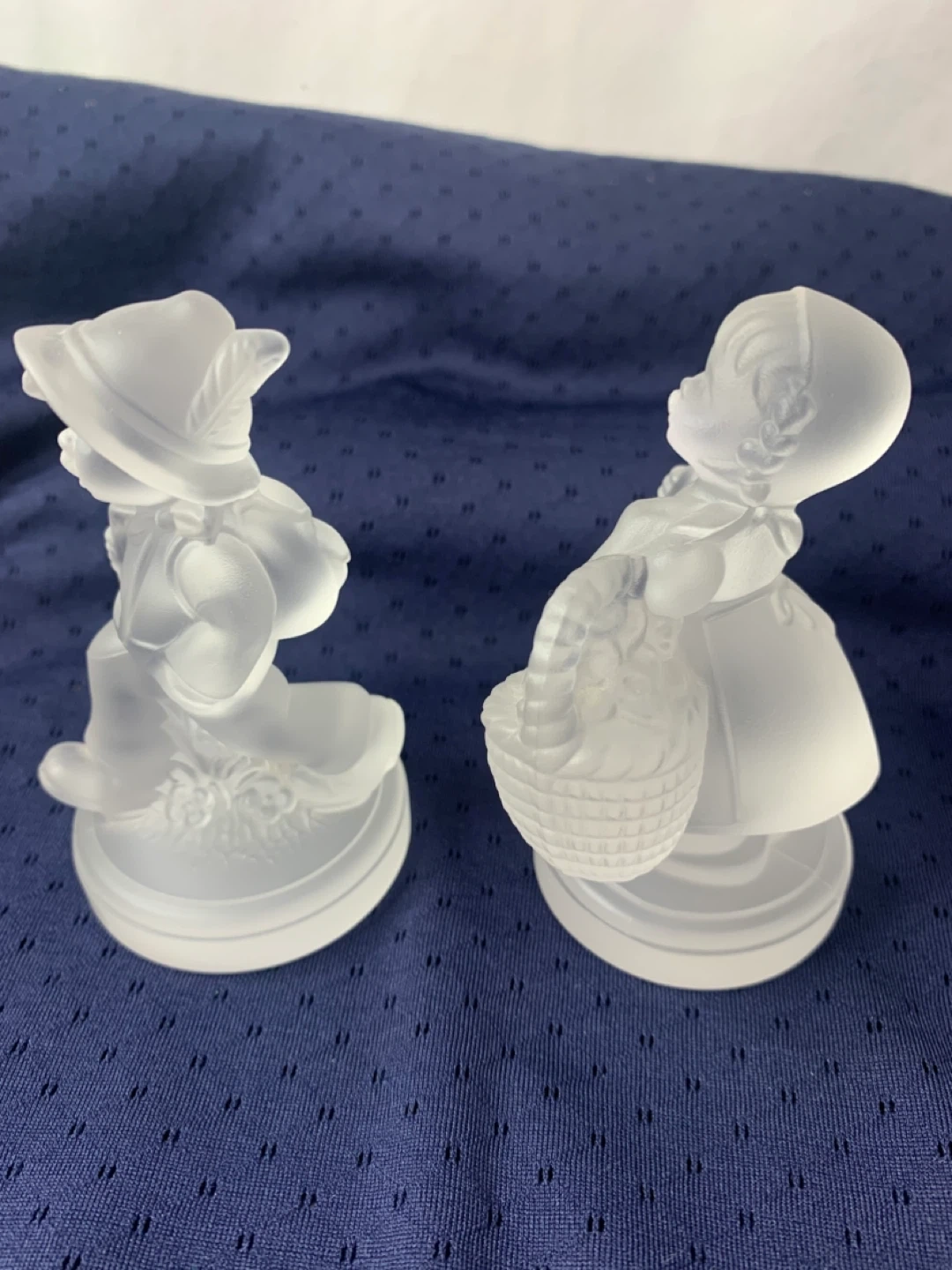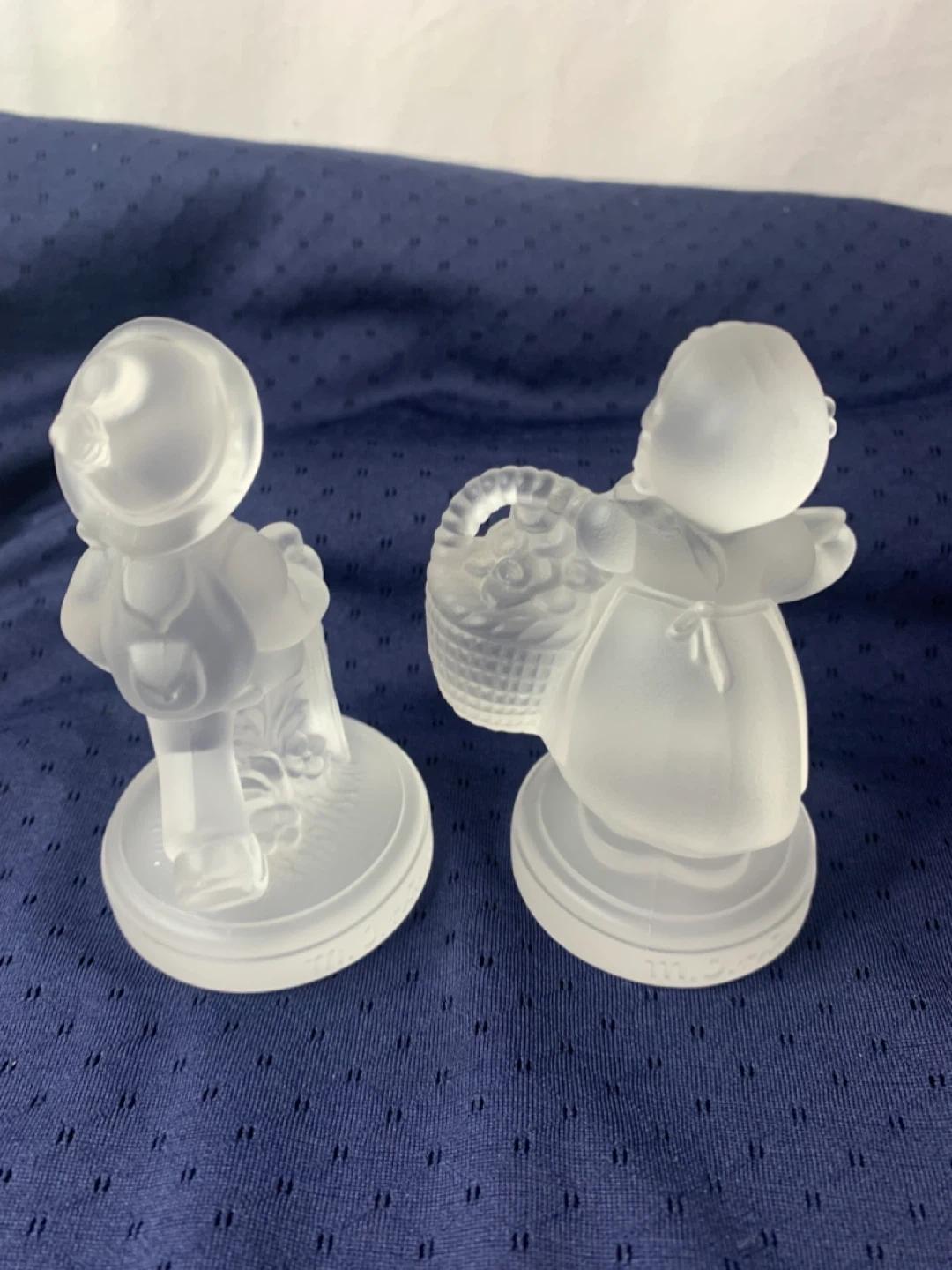 Selling a set of two lovely Goebel Hummel figurines made of frosted glass. One is a boy with a hat “The Botanist”and the other is a girl holding a basket “Meditation”. They are both in great condition!