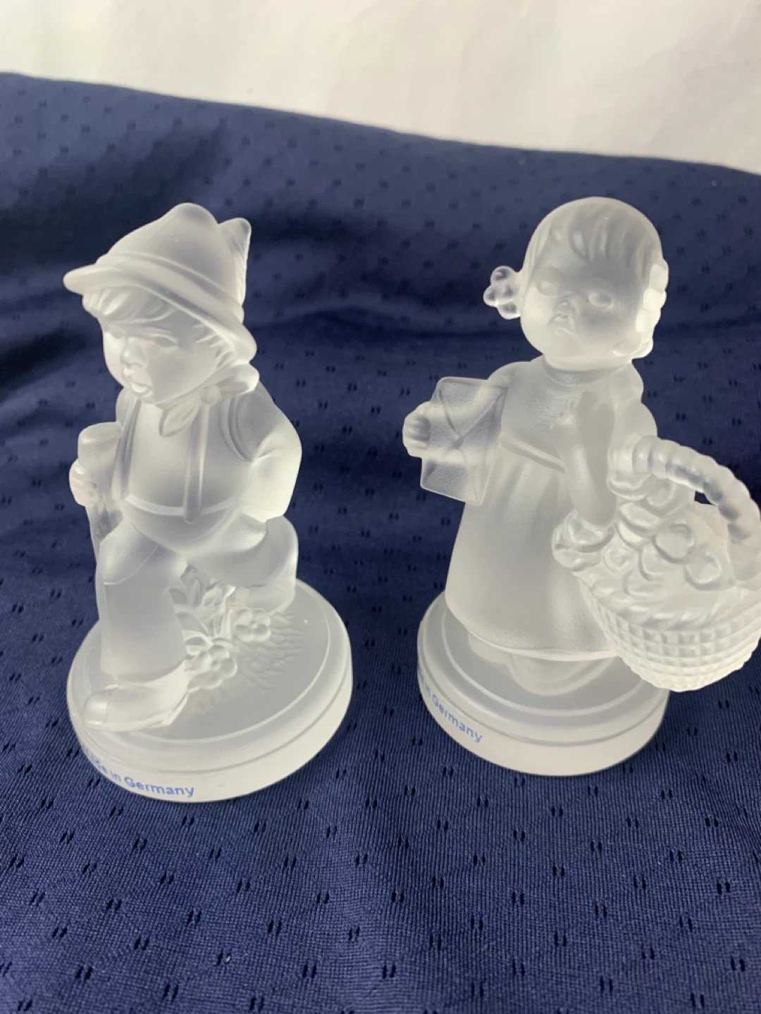 Goebel Hummel Frosted Glass Figurines - Boy & Girl