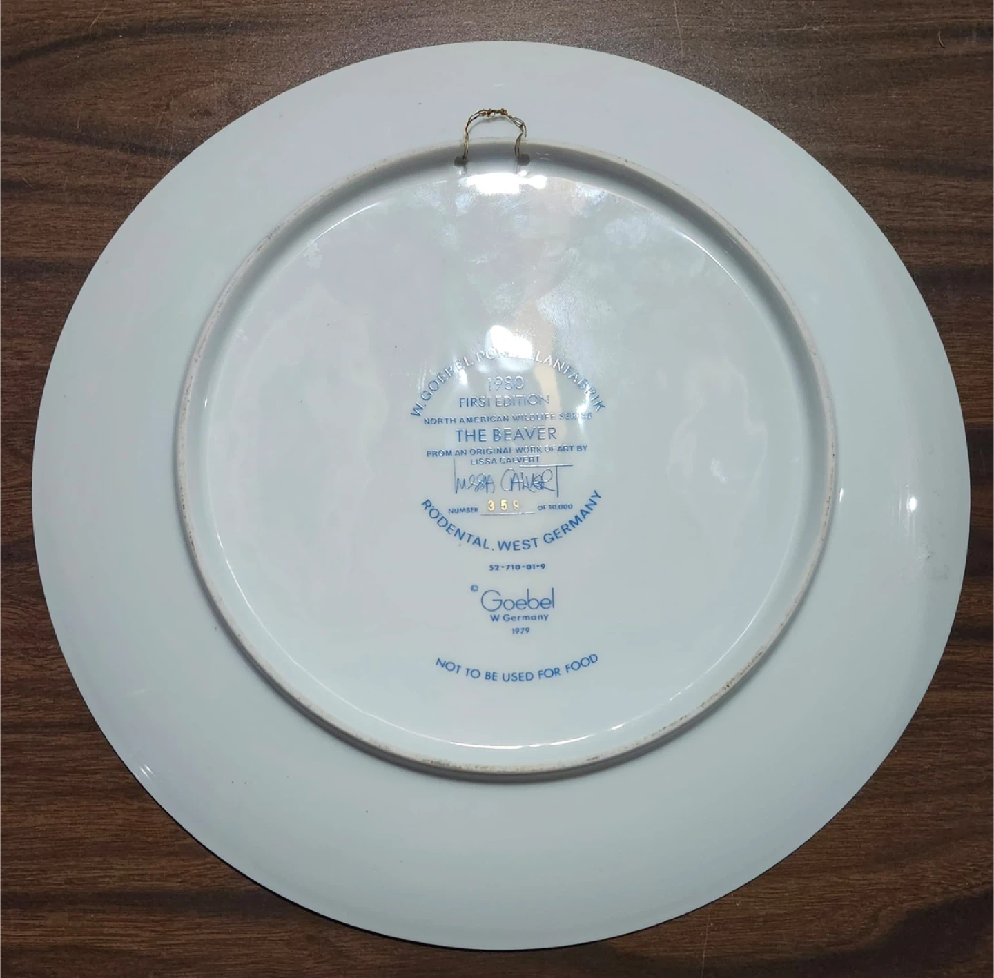 Selling a Goebel collector's plate titled 'The Beaver' from the North American Wildlife series, a first edition from 1989. This plate is numbered 3653. It's a beautiful piece of art by Lissa Guertler, made in Rodental, West Germany. Please note that it is not to be used for food