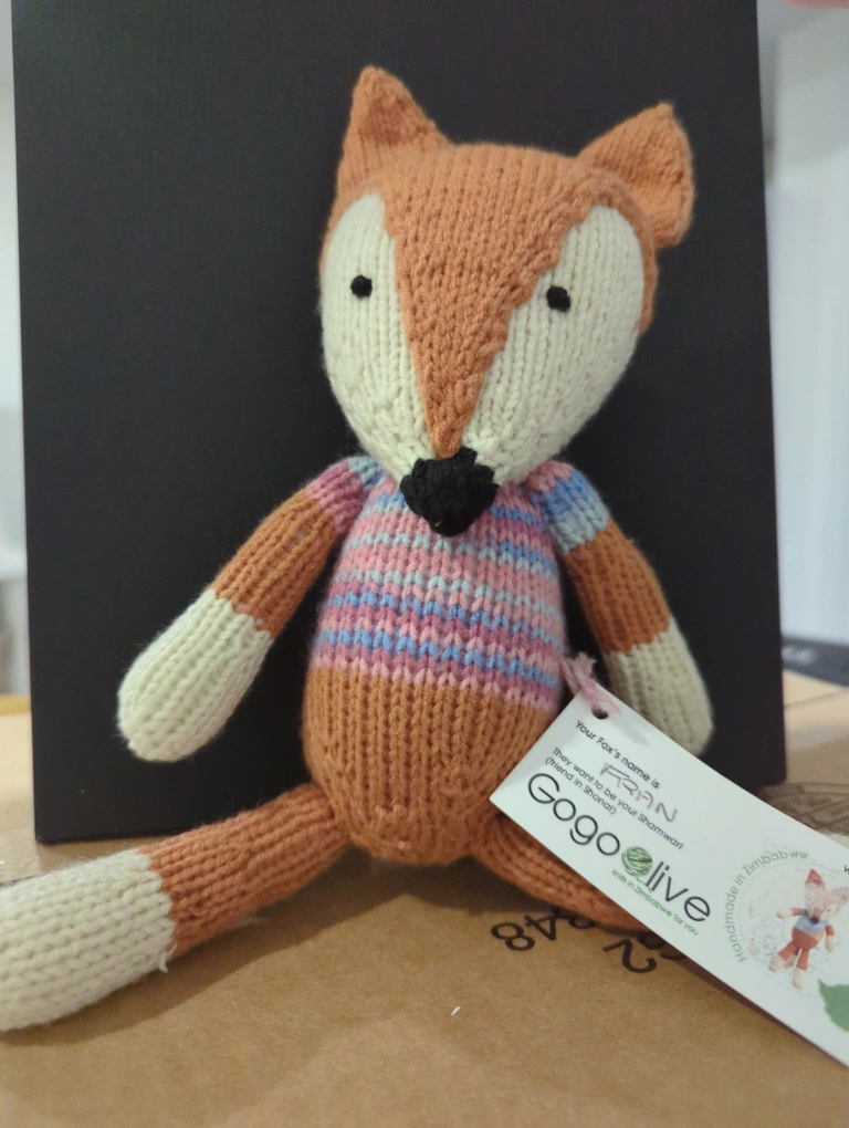 A knitted fox toy with a striped sweater. Pickup: Around Warden & Steeles ⭐Cash Only* ⭐ Responding to serious inquiries only ⭐ Price is firm.