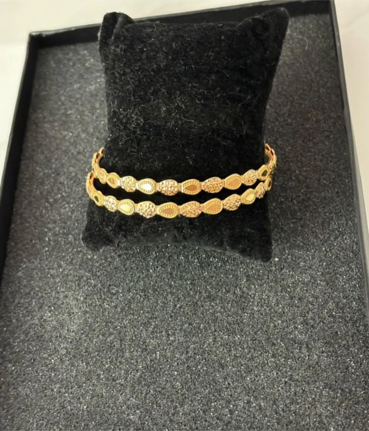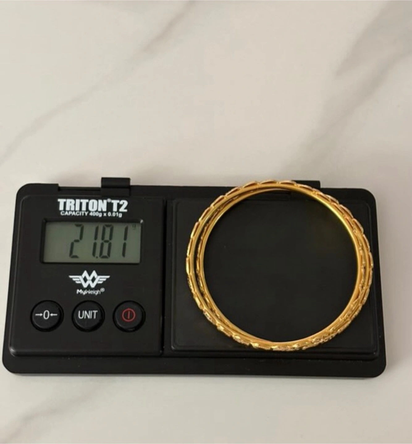 21K solid gold. Selling a set of gold bangles. are in great condition. The set weighs 21.81g. Saudi gold