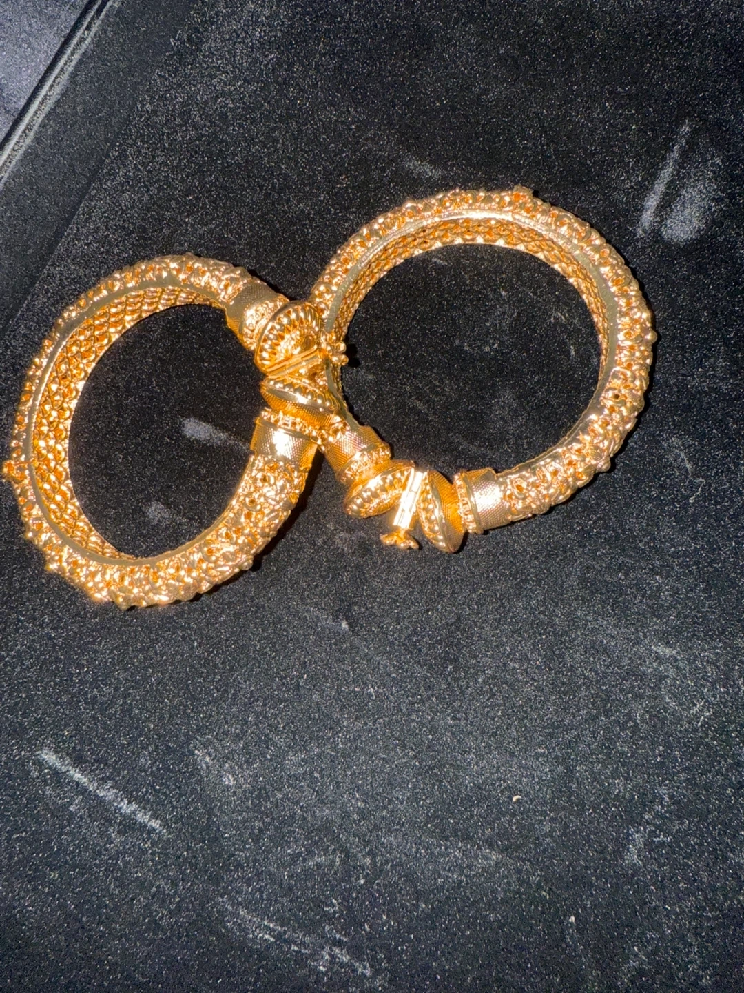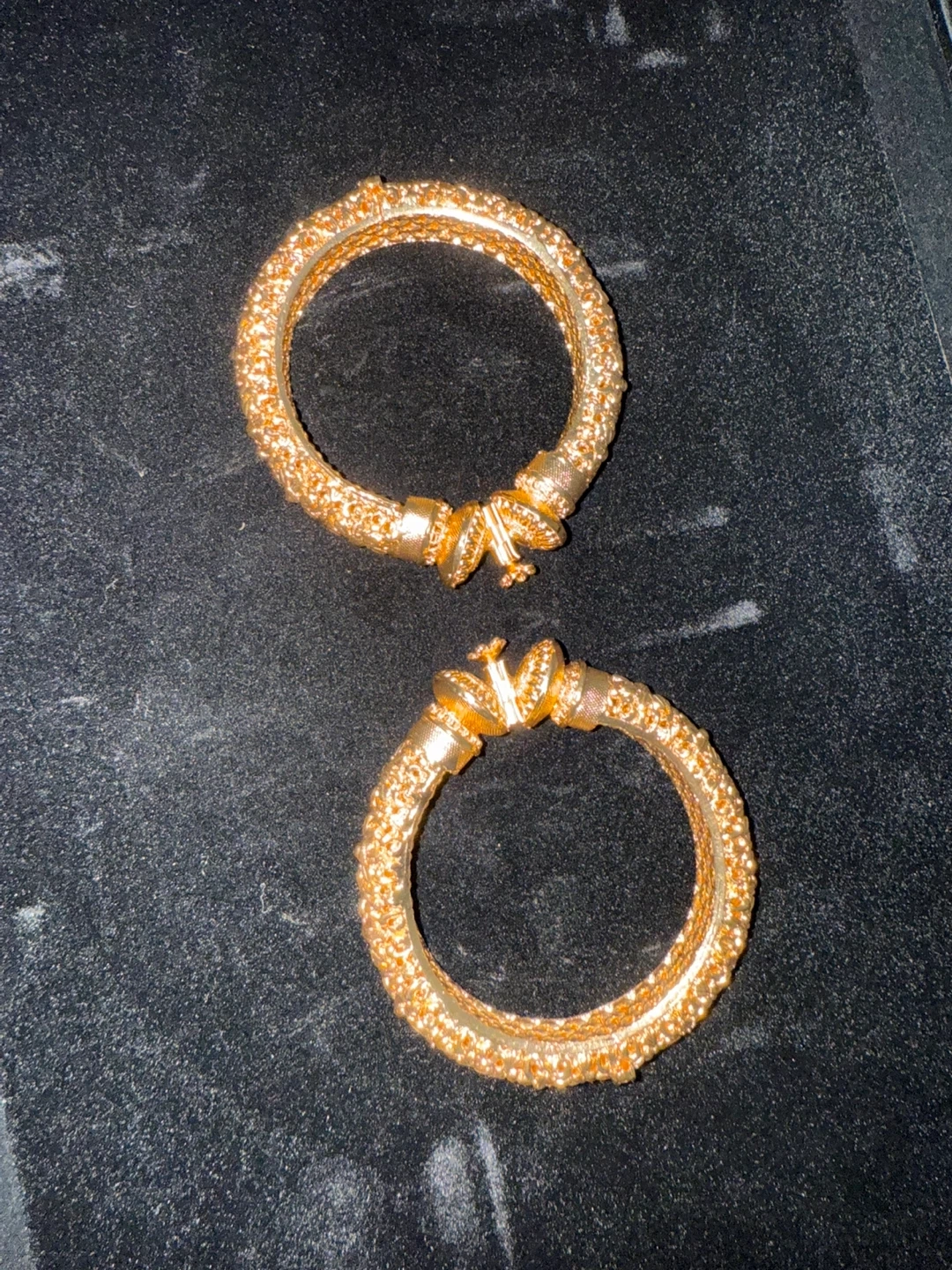 Selling a pair of gold brass bangles! It would be a lovely addition to any outfit