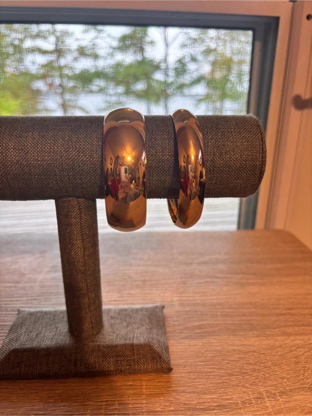 Selling a set of two gold cuff bangle bracelets. They're in great condition and would make a lovely addition to any outfit!