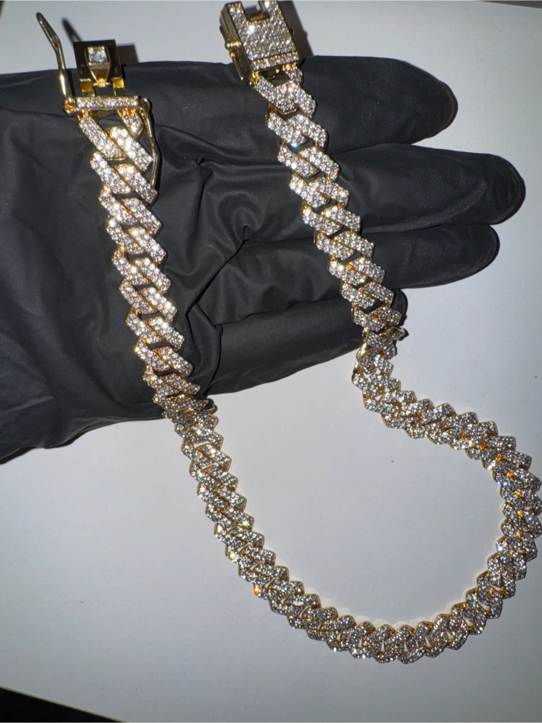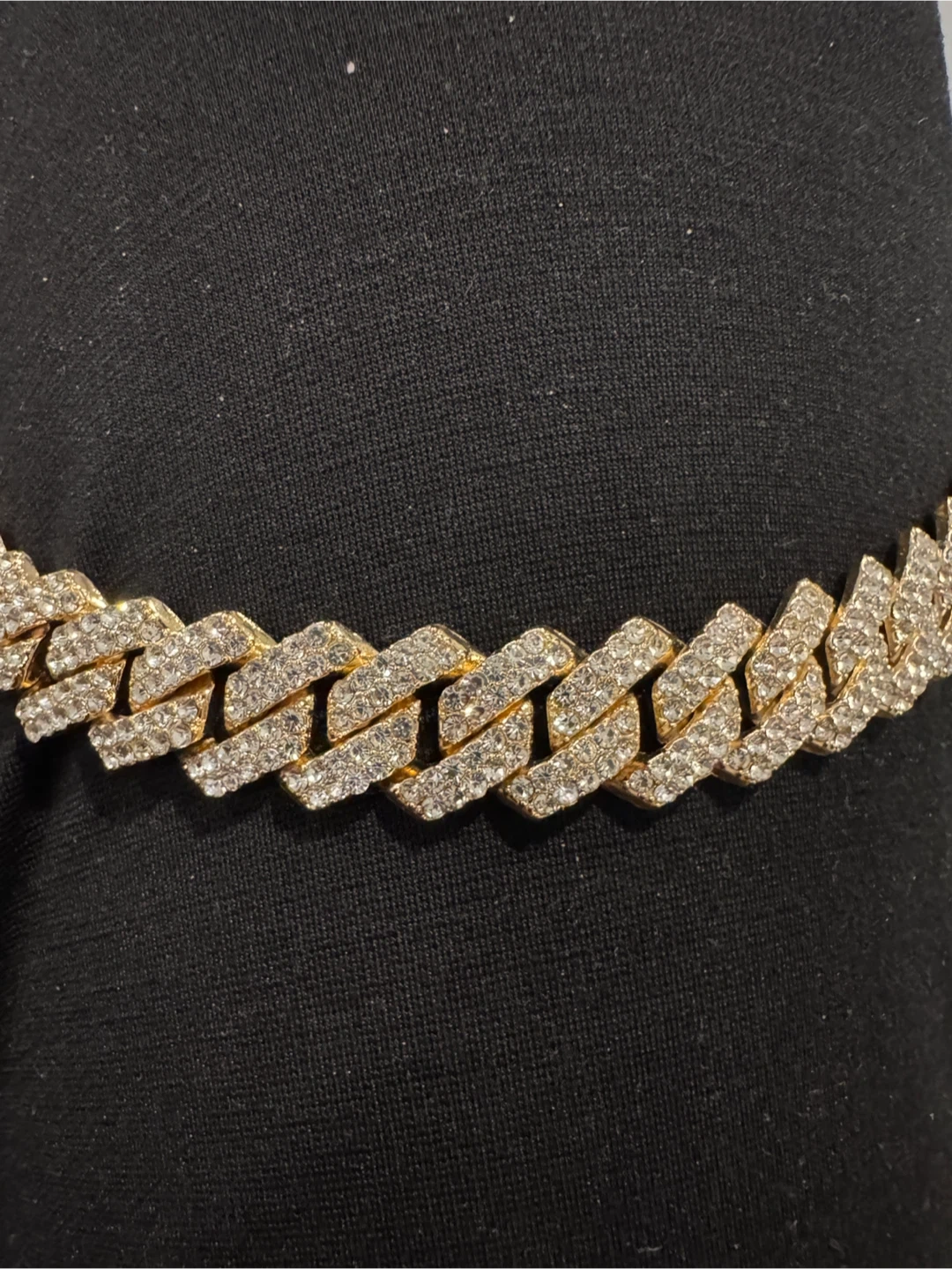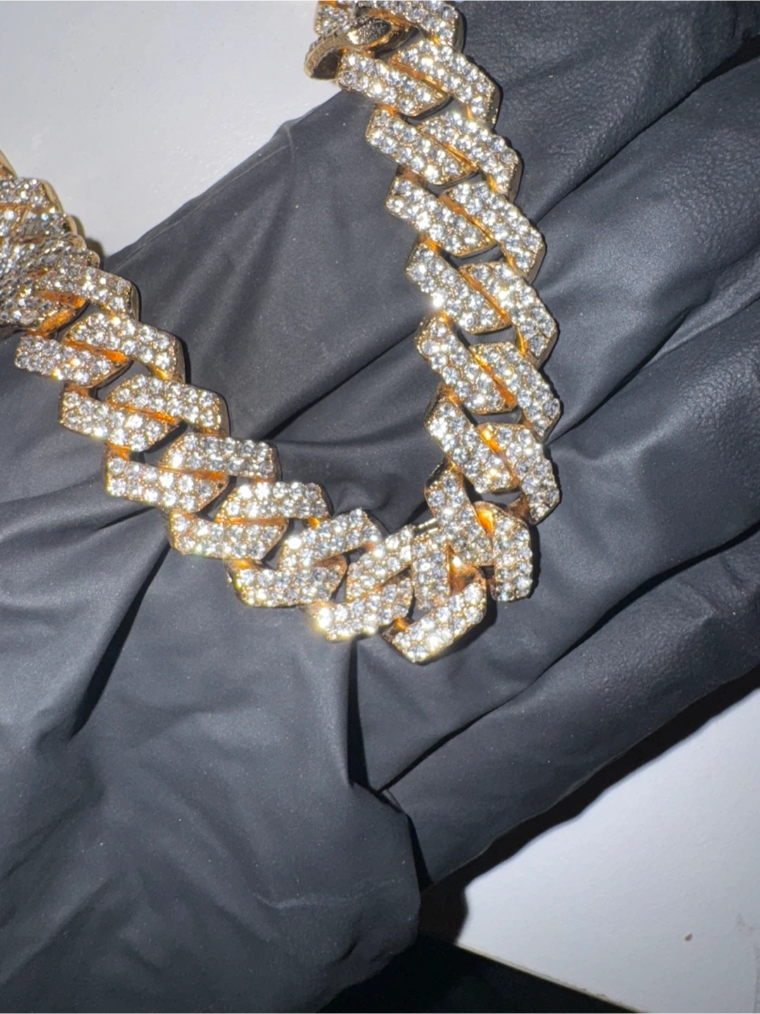 Selling a gold Cuban link chain, iced out with diamonds! It's in great condition and ready to add some sparkle to your look