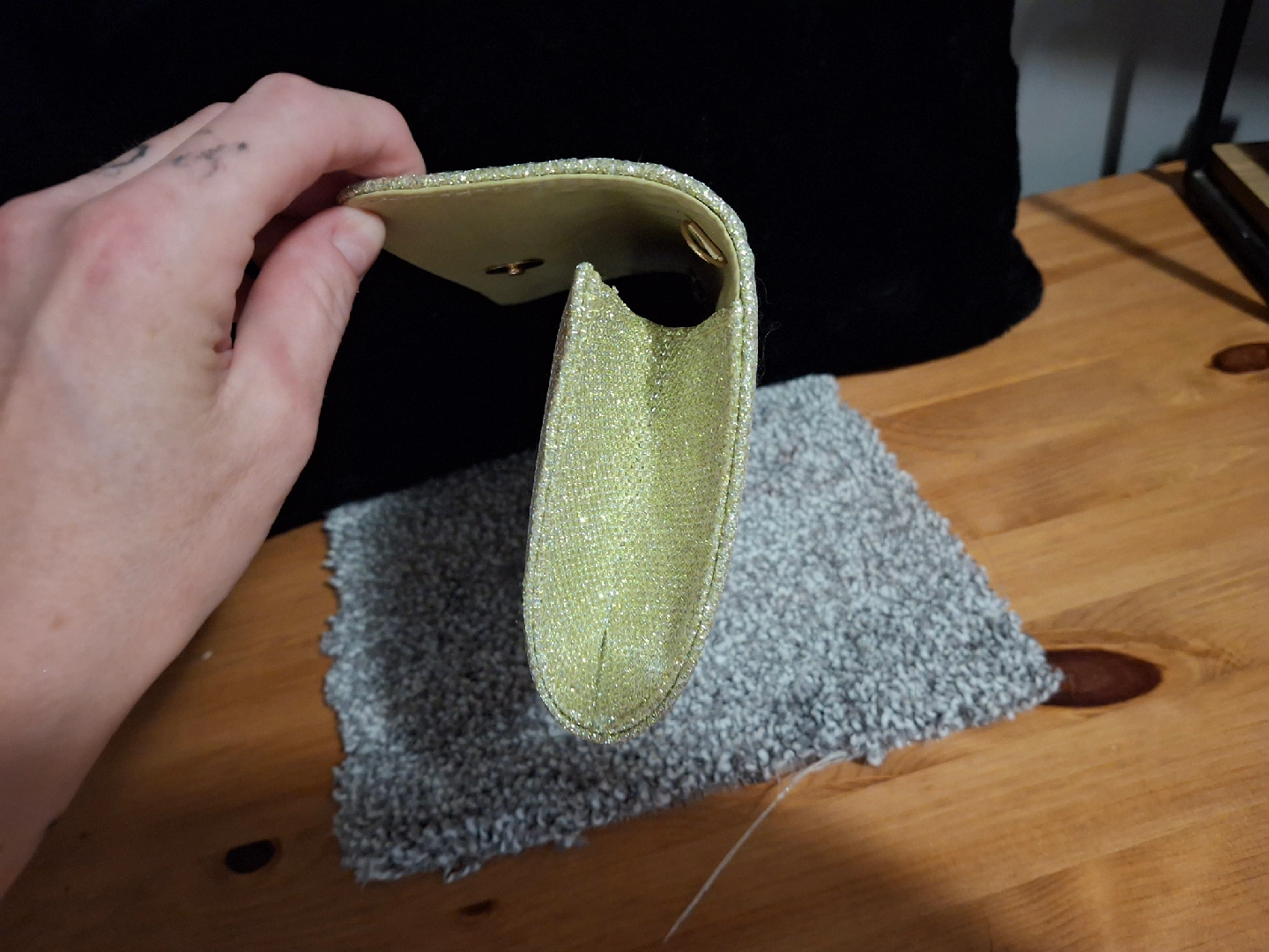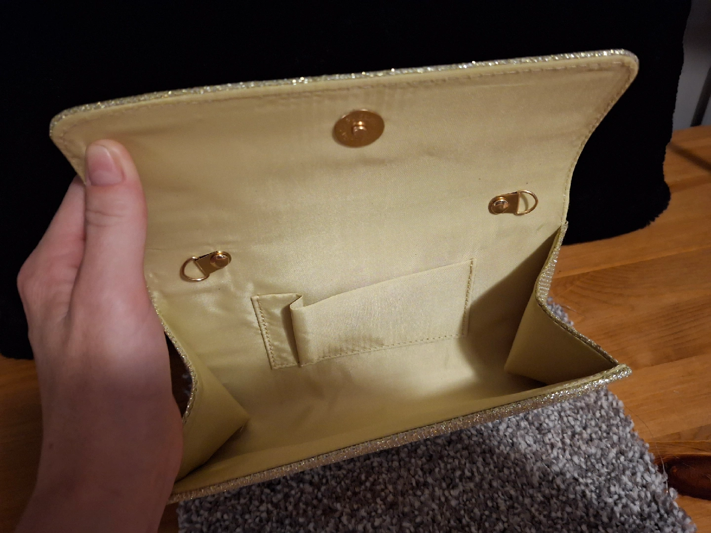 Selling a cute gold glitter clutch purse! It's perfect for a night out or a special occasion. The inside is a shiny gold colour with a small pocket. It's in great condition and ready for a new home