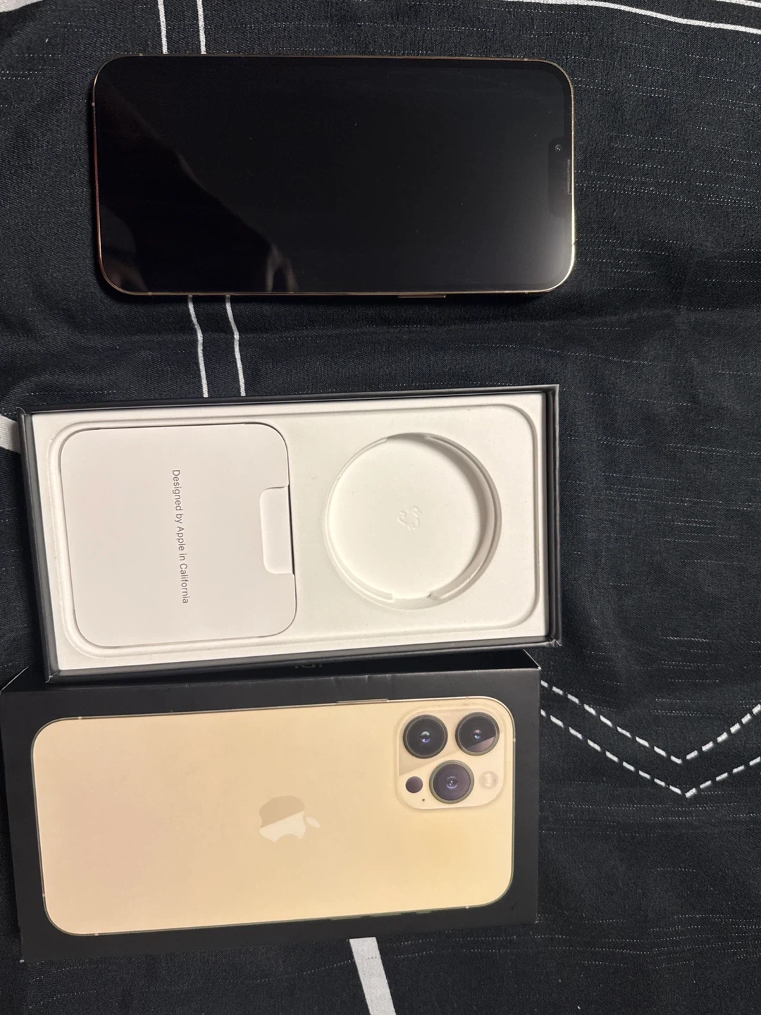 Selling a gold iPhone 13 promax. It's in good condition. Battery health 87% Reason to sell this is extra phone