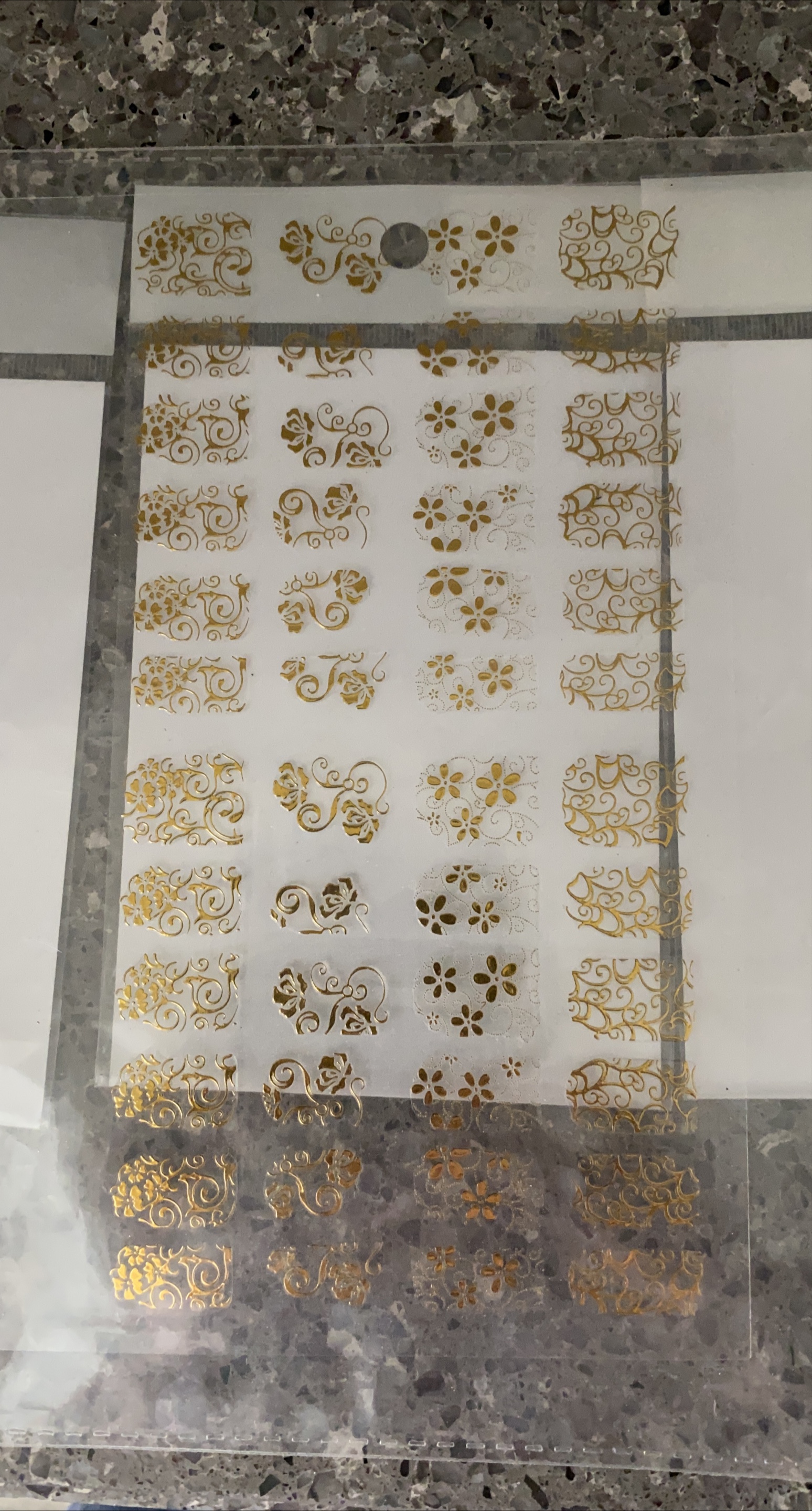 Add some flair to your nails with these gold nail art stickers! They feature a variety of floral and swirl designs to give your manicure a touch of elegance and personality
