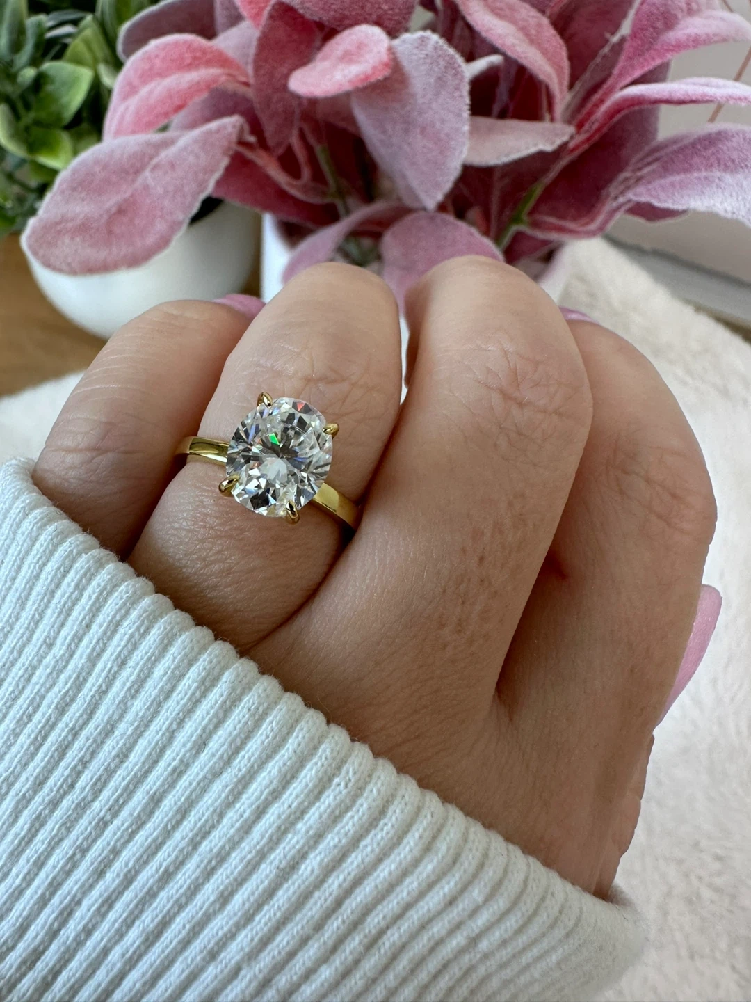 Gold plated Ring with Oval Cut Moissanite Stone