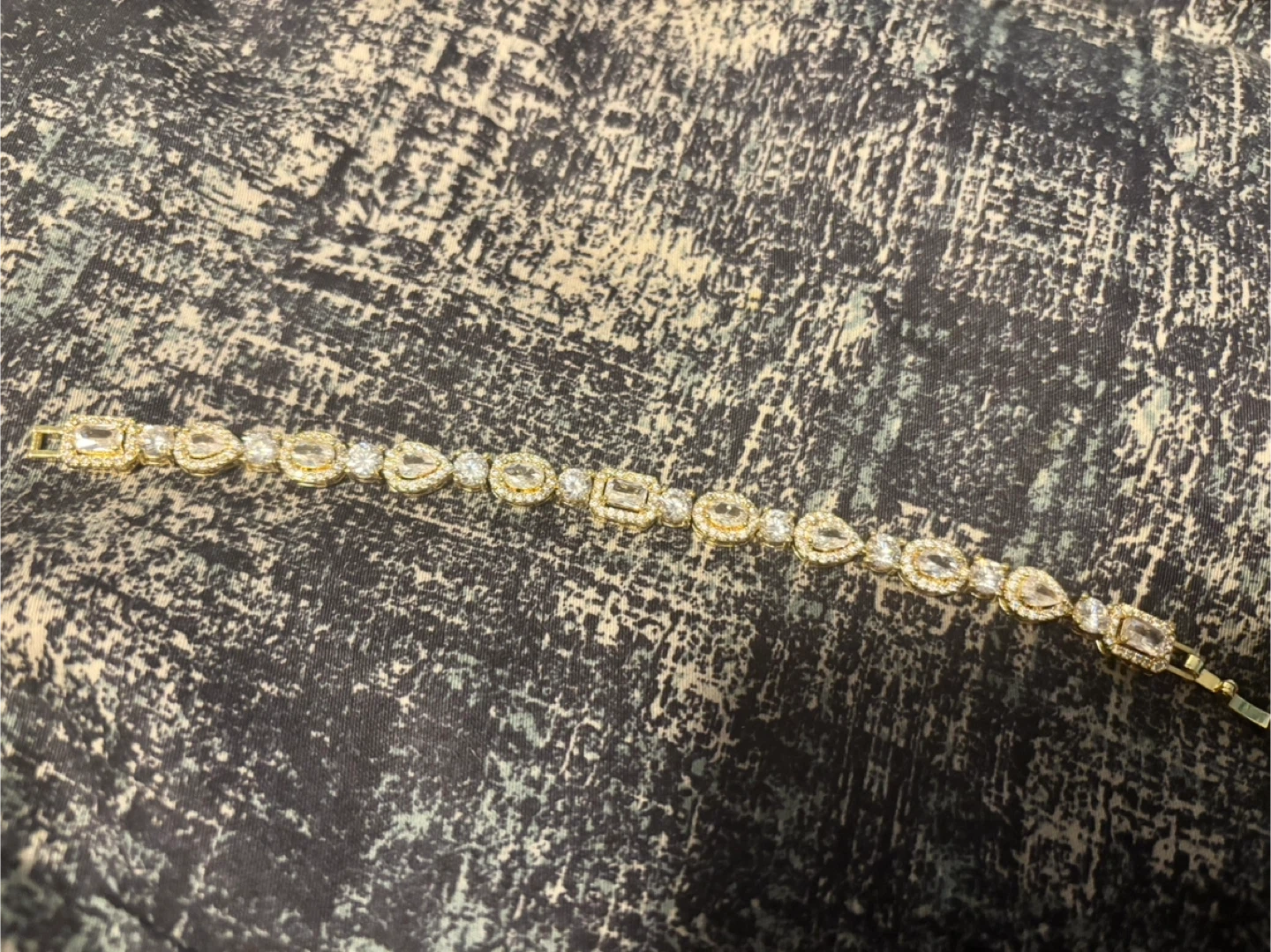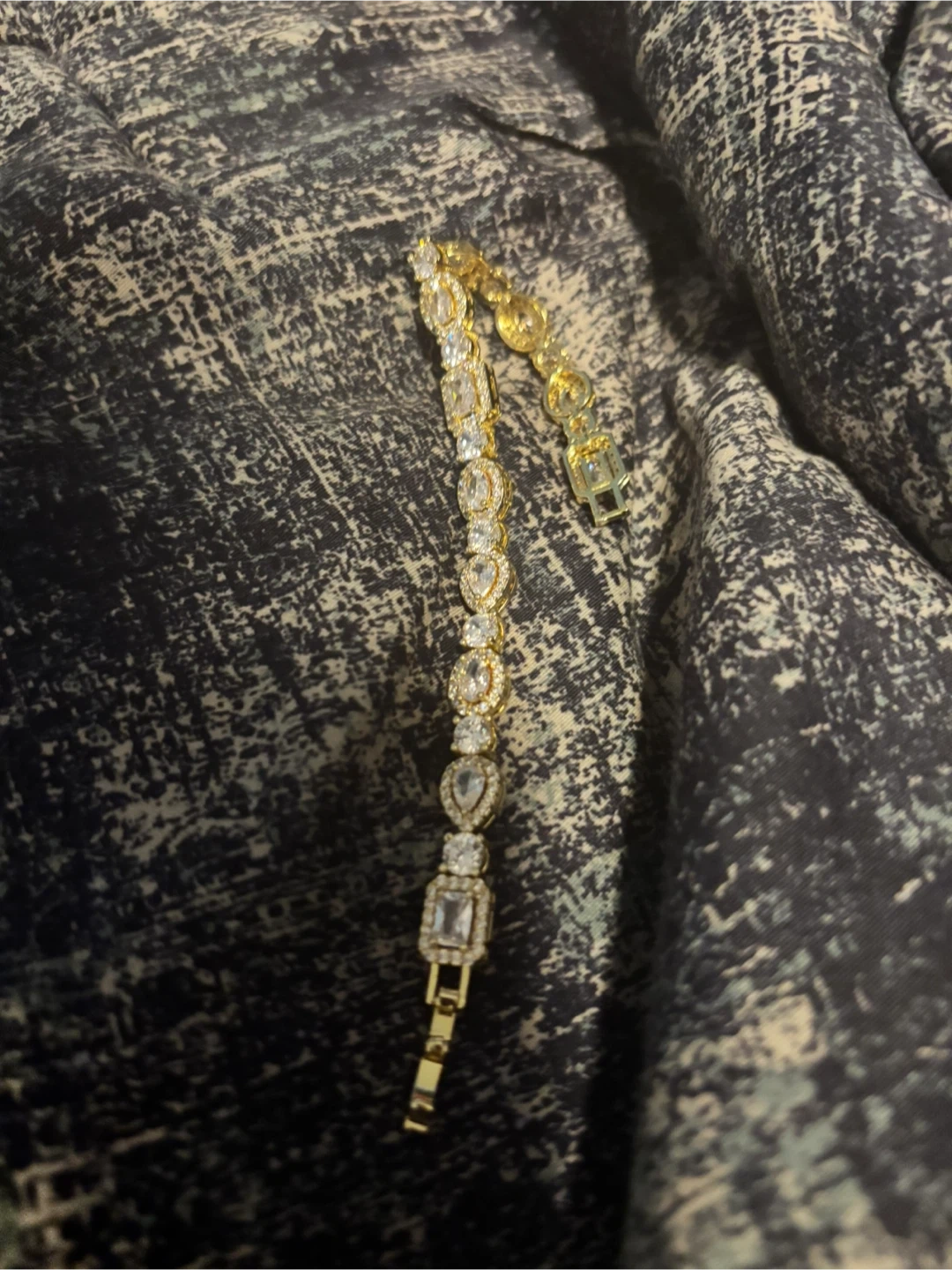 Selling a lovely gold-tone bracelet with rhinestone details. It's in great condition and adds a touch of sparkle to any outfit!