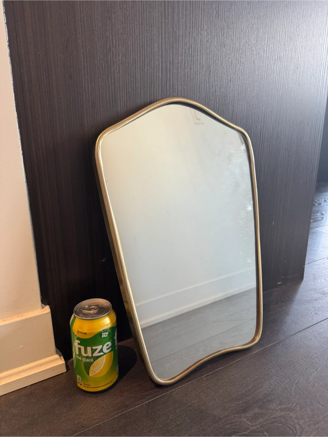 Selling a cute mirror with a gold trim! Can for size reference. Pick up and cash only