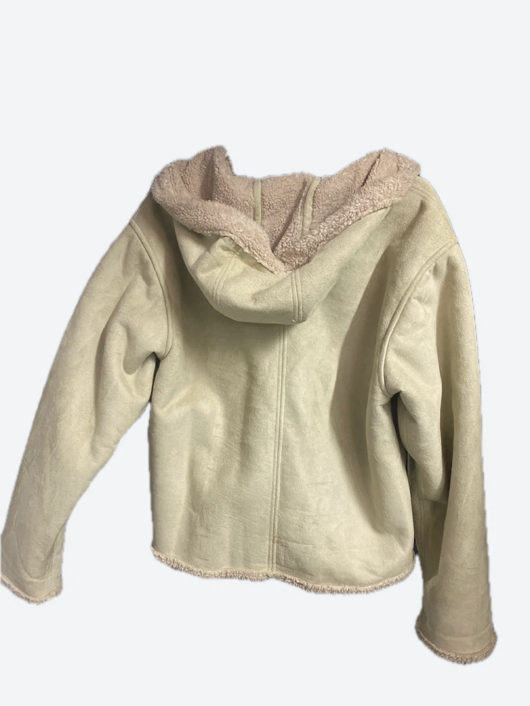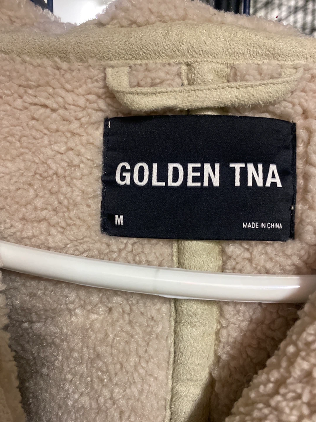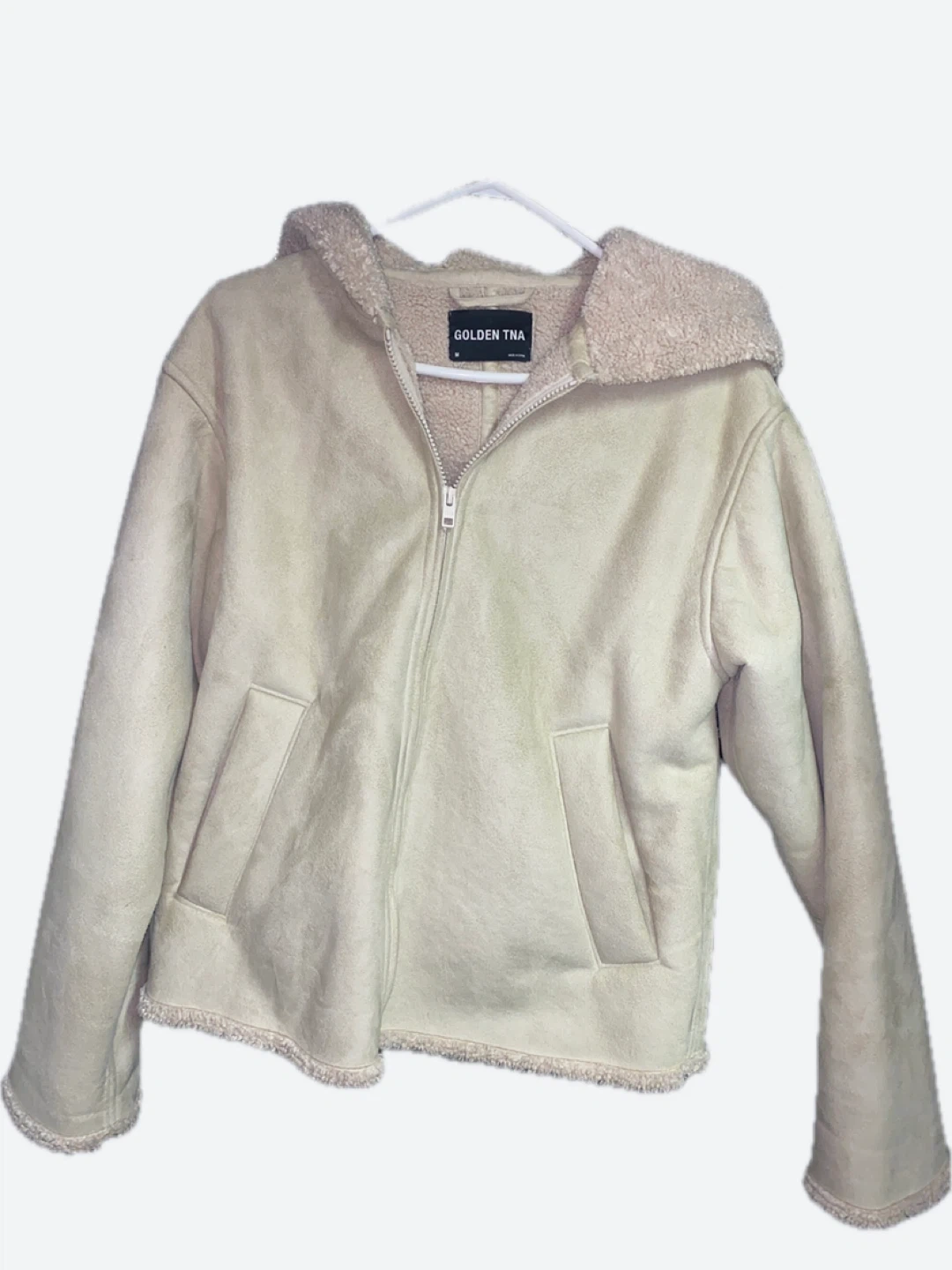 Selling a cozy Golden TNA sherpa jacket in a lovely beige colour! It's a size medium, boxy fit, and in great condition. Perfect for staying warm and stylish during the colder months!
