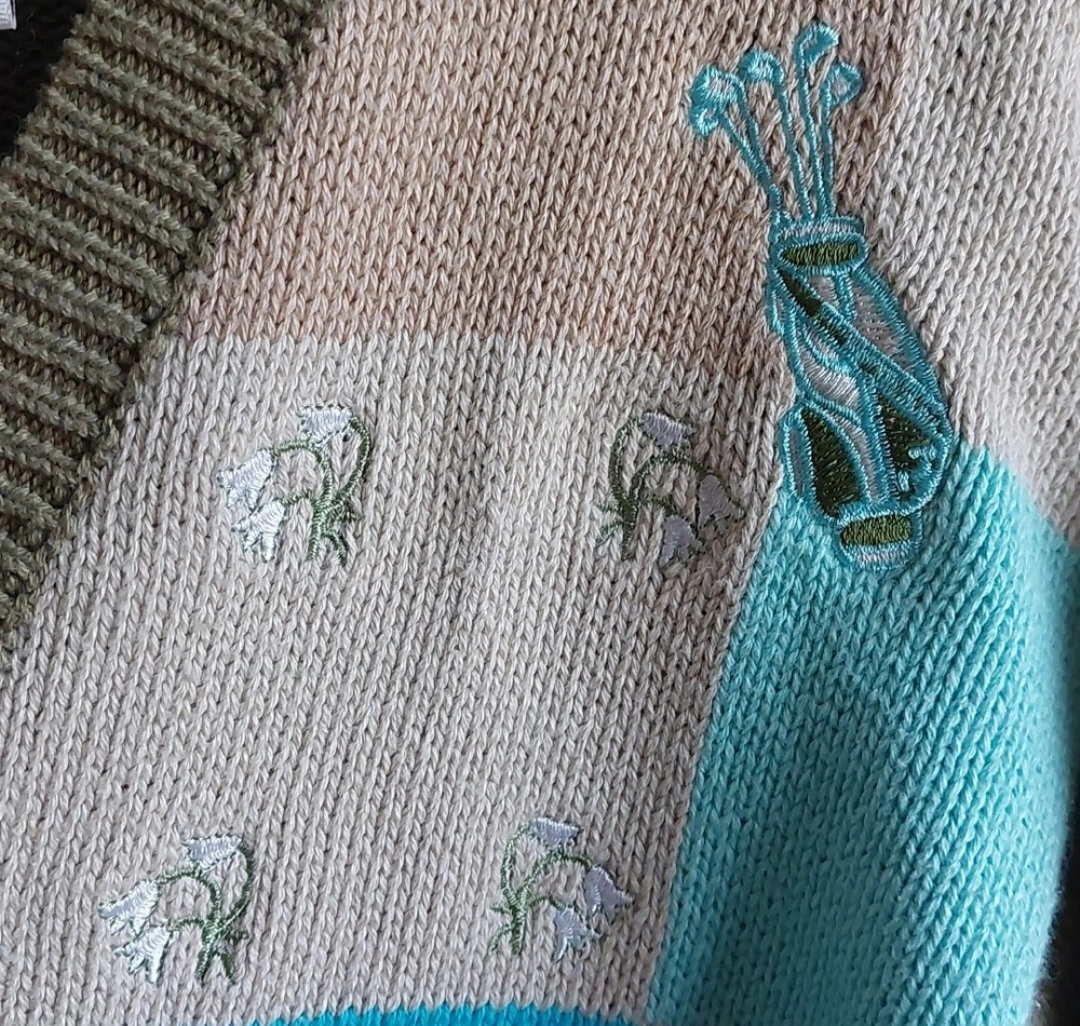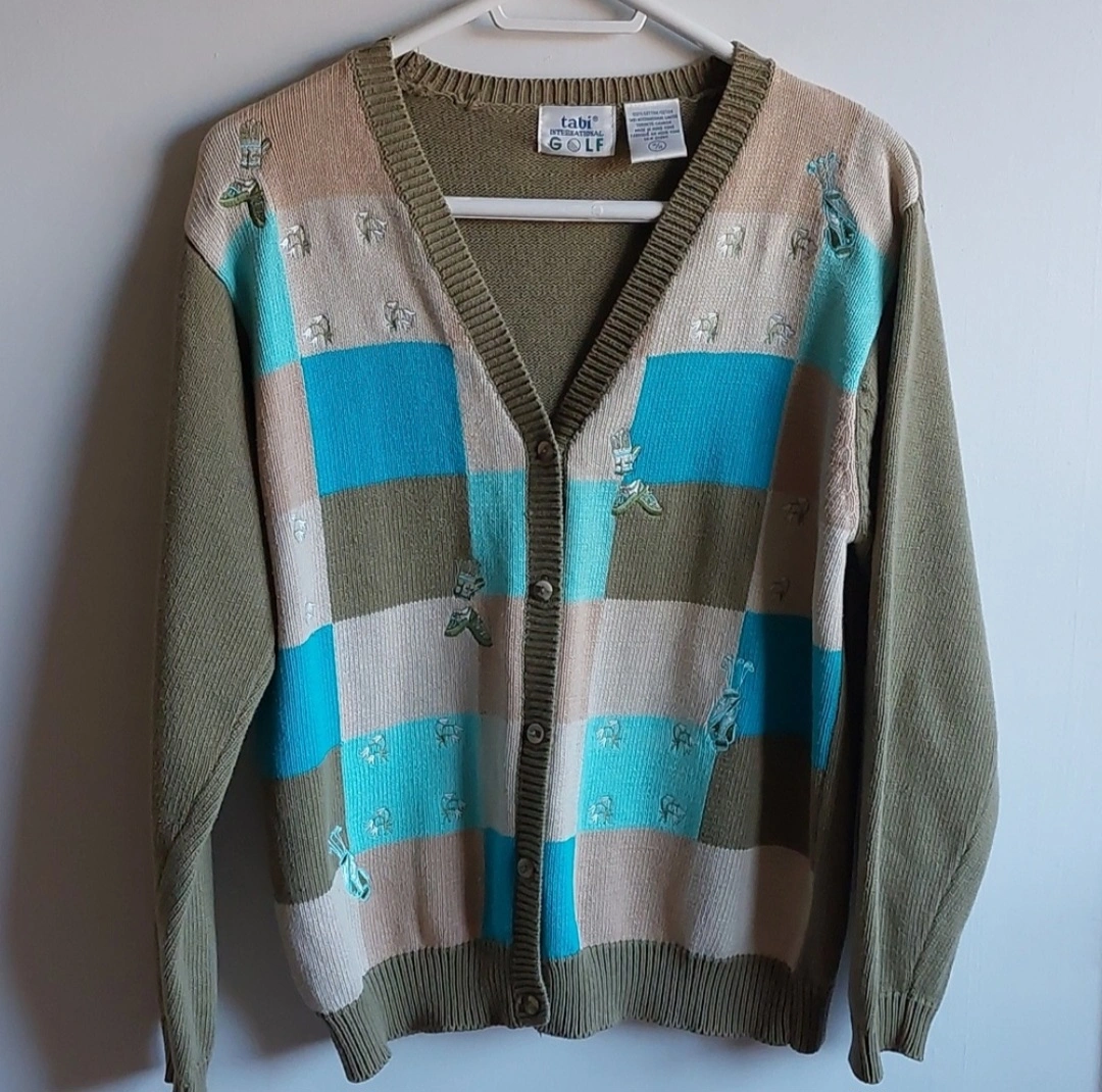 Super cute cardigan 100% cotton. In good condition ๐. Cute embroidered golf them items on sweater. Size medium