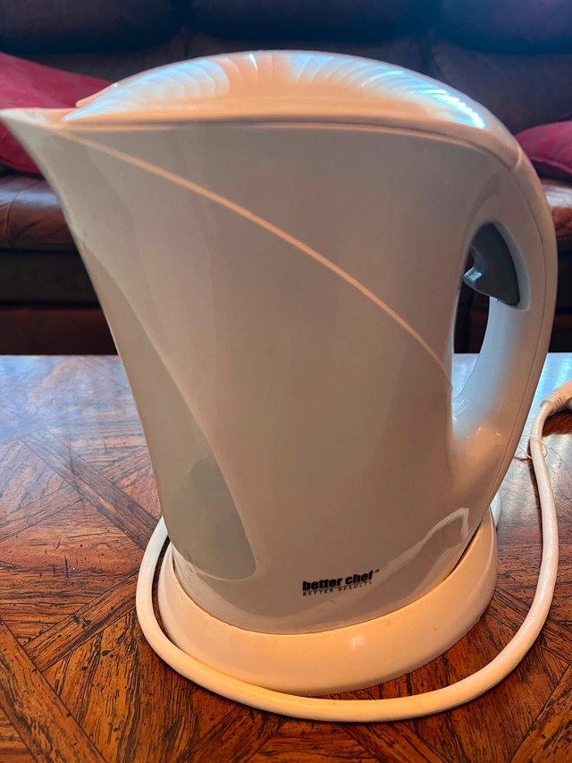 For sale in Good condition 1.5L Better Chef Electric Water Kettle Boiler. Recently upgraded so this one up for sale. Rapid-boil Water Boiler, Stainless Steel 304 Inside, 1500W Tea Kettle with Auto Shut Off and Boil Dry Protection. Electric Water Kettle Great for Tea and Coffee.