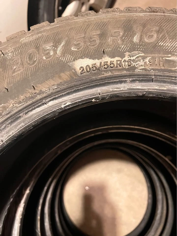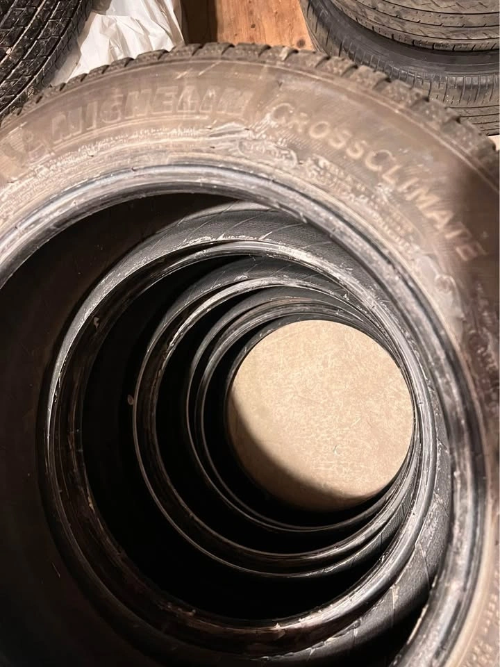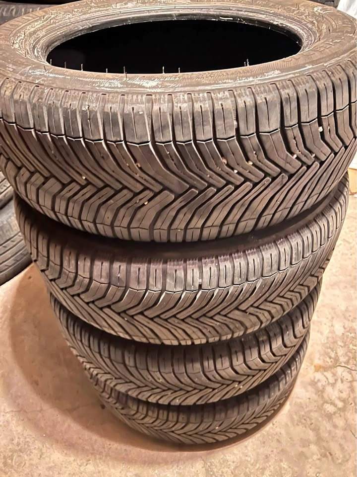 For sale in good condition 4 Winter Tires Michelin Crossclimate 205/55/16. Came off 2020 Toyota Corolla. No cracks, no leak, no damage. Tread on both front tires 7/32” (65%) Tread on both rear tires 6/32” (54%)