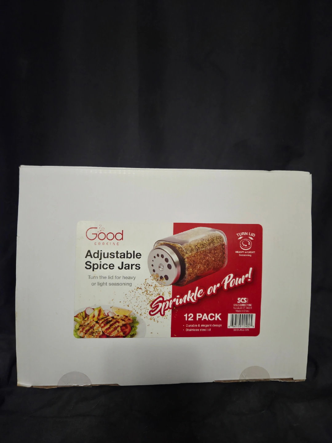 Get organized with this set of Good Cooking Adjustable Spice Jars! This pack includes 12 durable and elegant spice jars, each with a stainless steel lid. They're designed to turn the lid for heavy or light seasoning, so you can sprinkle or pour with ease. 2 available if interested