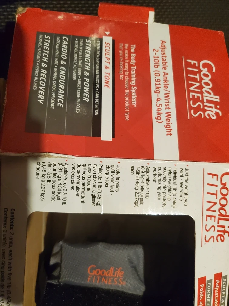 Goodlife Fitness ankle weights in great condition! Perfect for adding resistance to your workouts. They're grey with black straps and the Goodlife Fitness logo in orange.