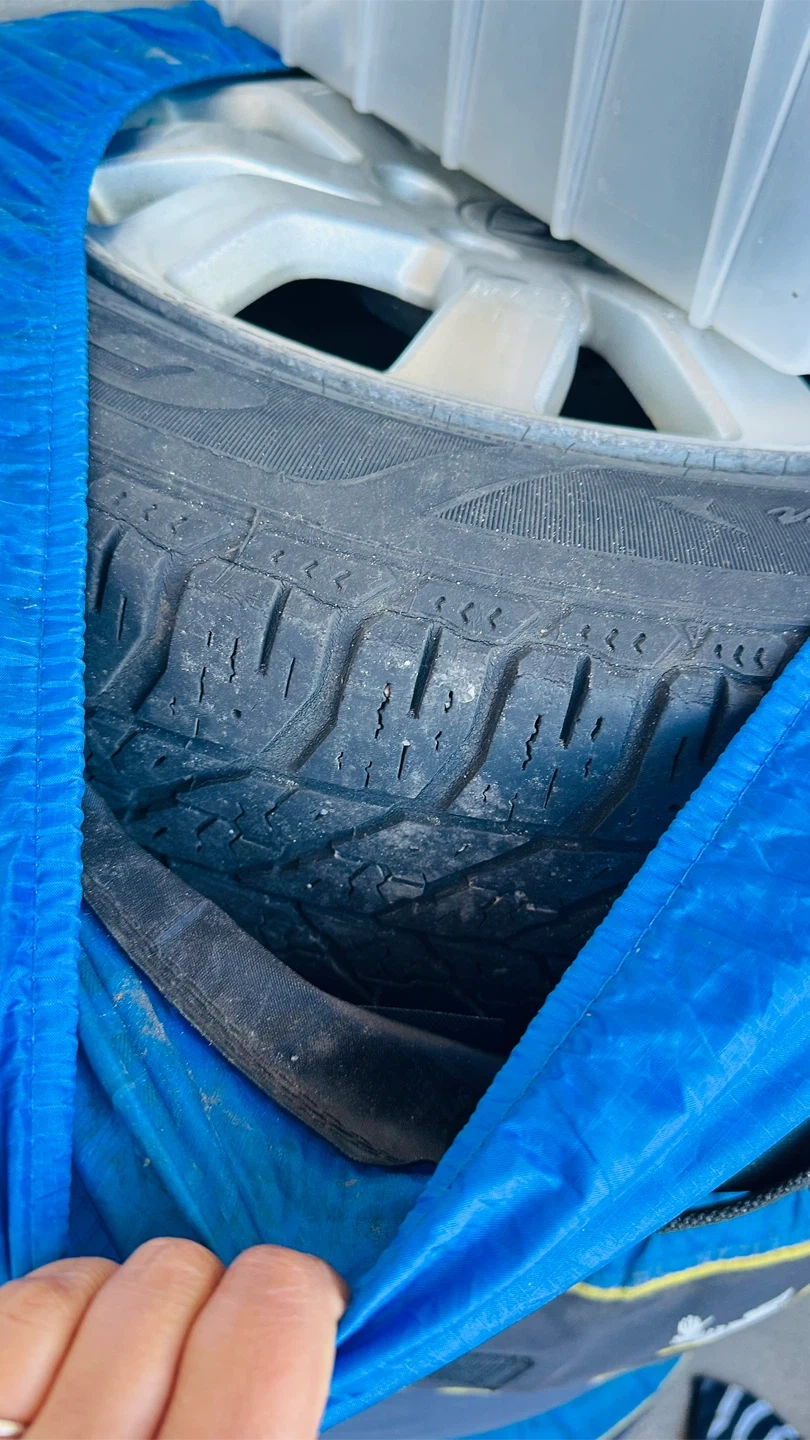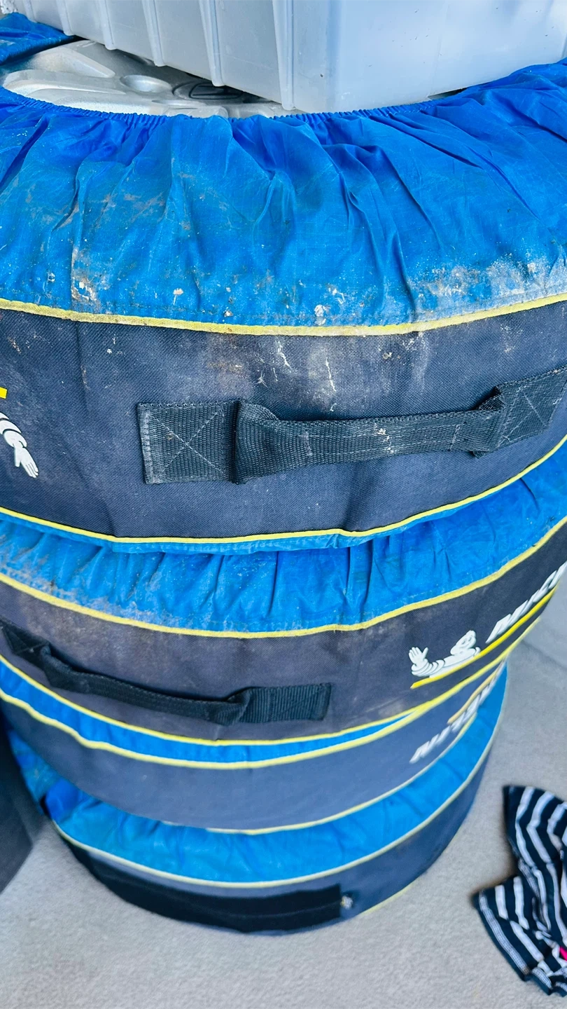 Selling a set of four goodyeartires, size 215/60R16. They come with blue and black Michelin branded tire covers and rim . Great for winter tire storage!