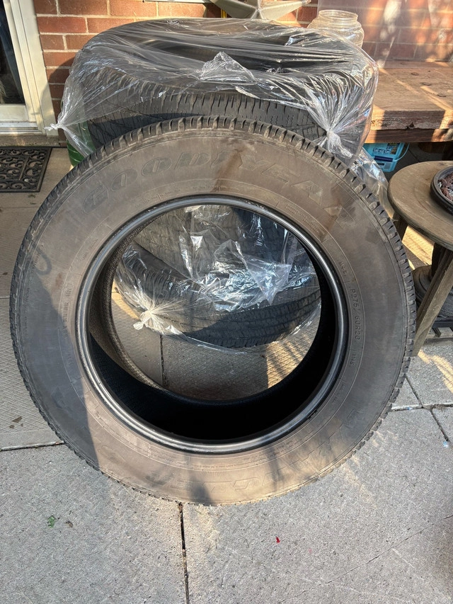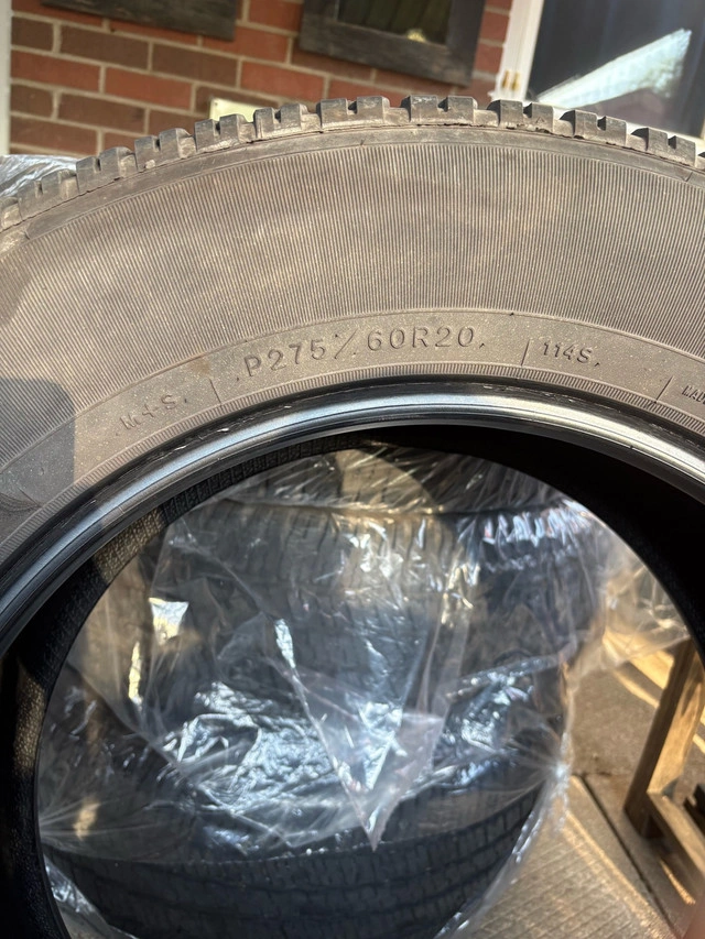 Set of 4 for $600. Tread depth measurement of 6.04mm. Goodyear SR-A Mud And Snow Rated. Designed for trucks and SUVs, this tire features Goodyear’s new WetTrac technology, a unique wet-traction compound that combines with the asymmetric tread to reduce the risk of hydroplaning and provide superior traction on wet roads. On or off the beaten path, the Wrangler SR-A delivers excellent handling and traction with a comfortable and quiet ride. Tires by Vehicle Type: SUV & Light Truck Tires by Season: All Season Tire Brand: Goodyear For Sale By: Owner Tire size (diameter): 20 in.