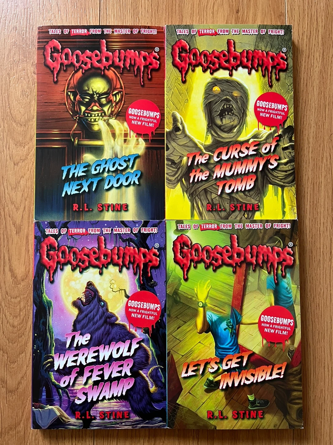 Selling a set of four Goosebumps books by R.L. Stine! $5 each or $15 for all of them. Titles include: The Ghost Next Door, The Curse of the Mummy's Tomb, The Werewolf of Fever Swamp, and Let's Get Invisible! Pickup in Richmond.