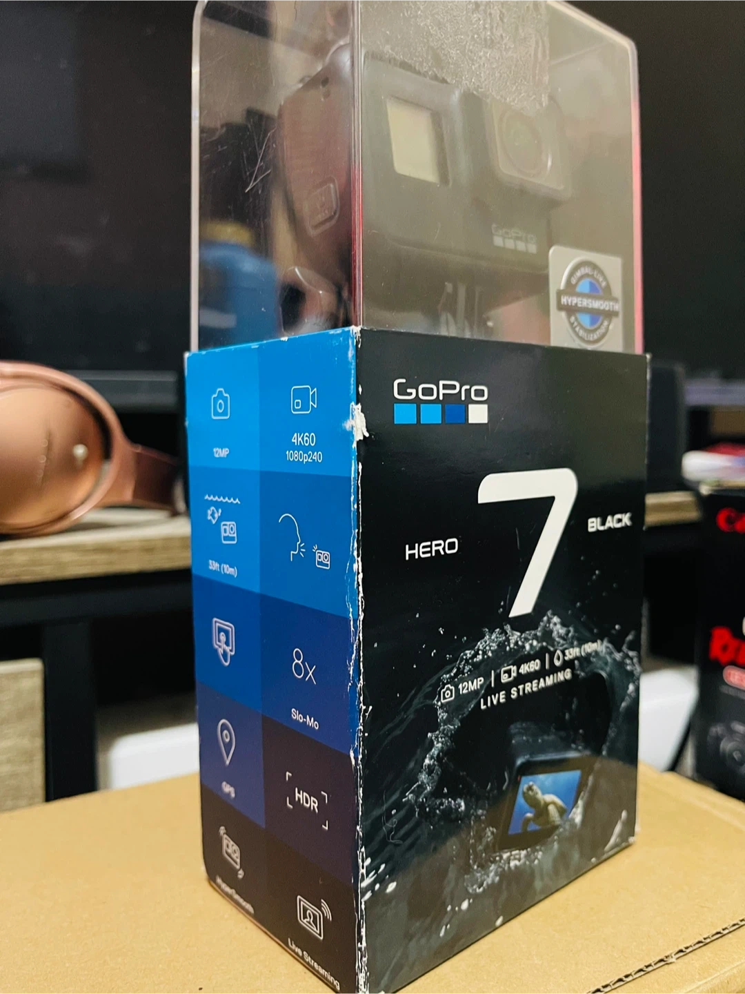 Selling a GoPro Hero 7 Black action camera! It comes with the original box. Great for capturing all your adventures in 4K. It's also waterproof up to 33ft (10m) and features 8x Slo-Mo and live streaming capabilities brand new still sealed asking 220 obo fcfs