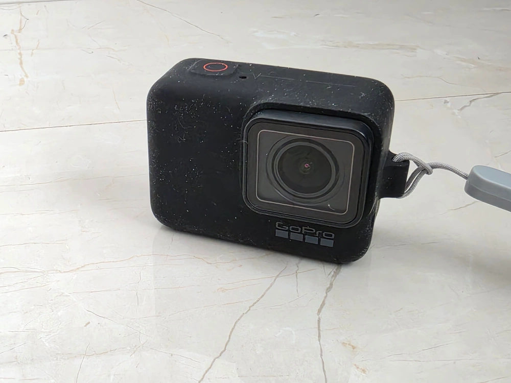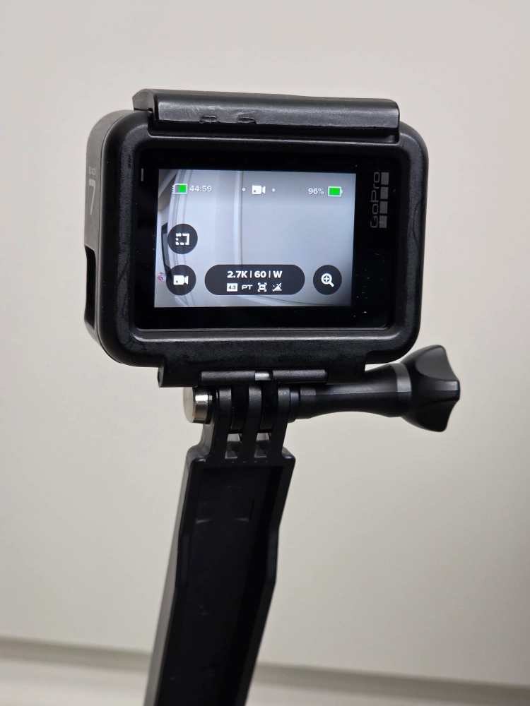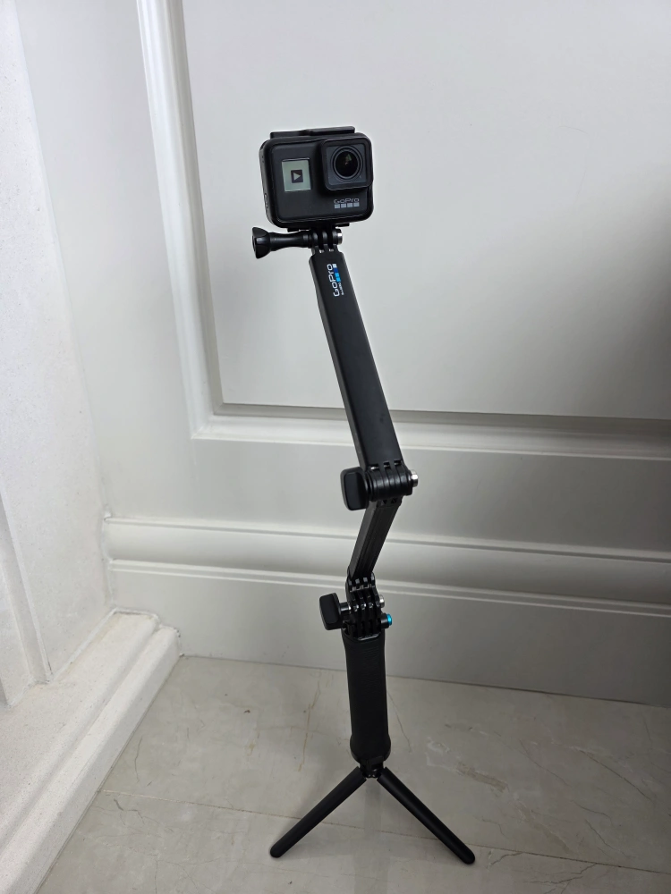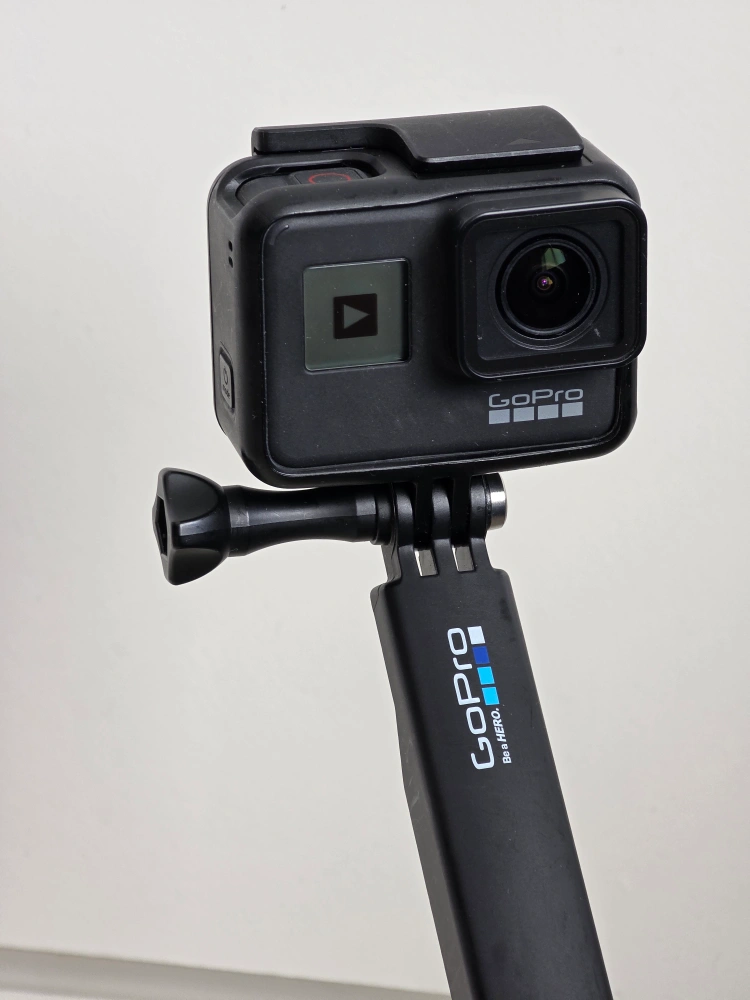GoPro HERO7 Black action camera. Includes protective housing and a GoPro branded extension pole. Great for capturing action shots and videos. Used but like new. One battery included