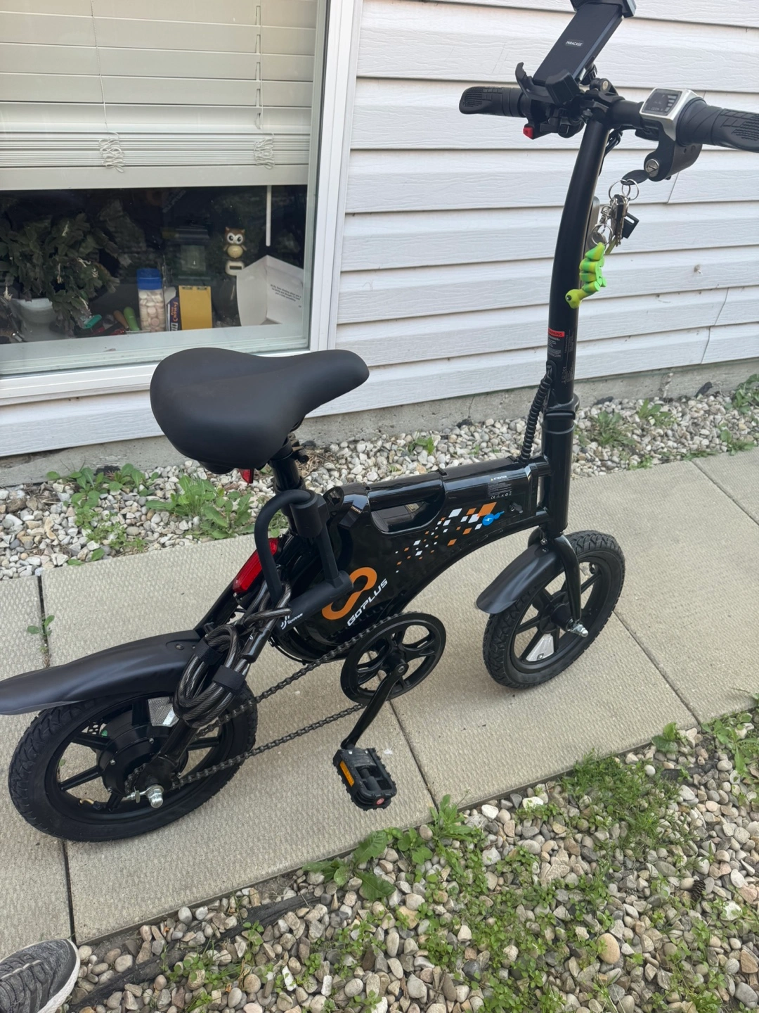 Check out this GOTRAX EBE2 folding electric bike! It's perfect for getting around town and folds up for easy storage. It's in great condition and ready for a new owner. Only has about 10 km on it. Pick up only, Cash only