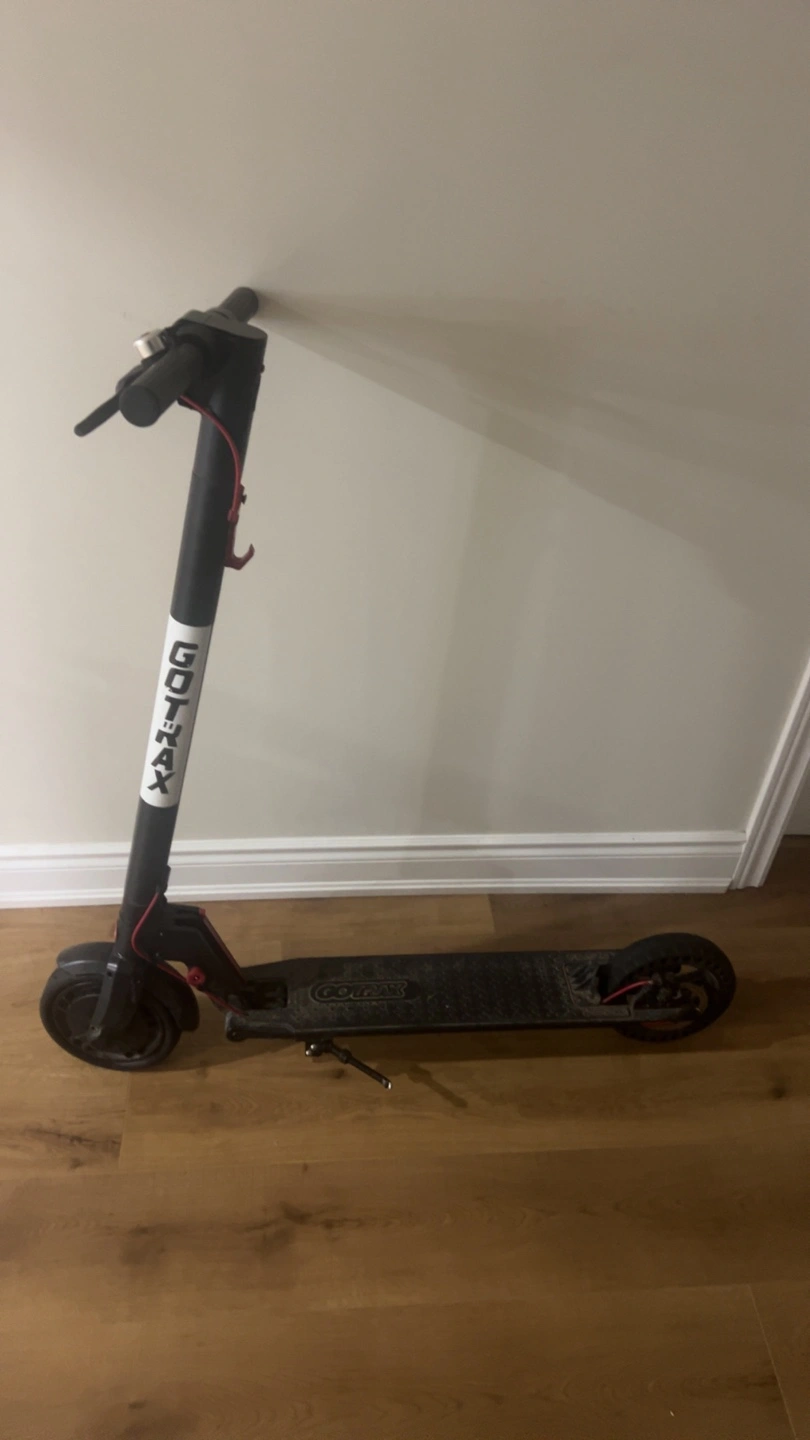 Selling my Gotrax GXL V2 electric scooter. It rides great and is solid overall — just needs a bit of light maintenance. Specs: • Top speed: 15.5 mph • Range: Up to 12 miles per charge • Motor: 250W • Tires: 8.5” pneumatic front, solid rear tire (never needs replacing) • Brakes: Front electronic + rear disc • Folds down for easy carrying/storage • Built-in headlight & kickstand • Charges in 4–5 hours Condition Notes: • Front tire is flat (easy to replace or patch) • Rear tire is solid/hardened and won’t need replacement • Rear mudguard is broken but replaceable (affordable part online) • Some cosmetic wear on deck, but scooter works as intended Great starter scooter or cheap commuter. Price reflects the minor fixes needed.