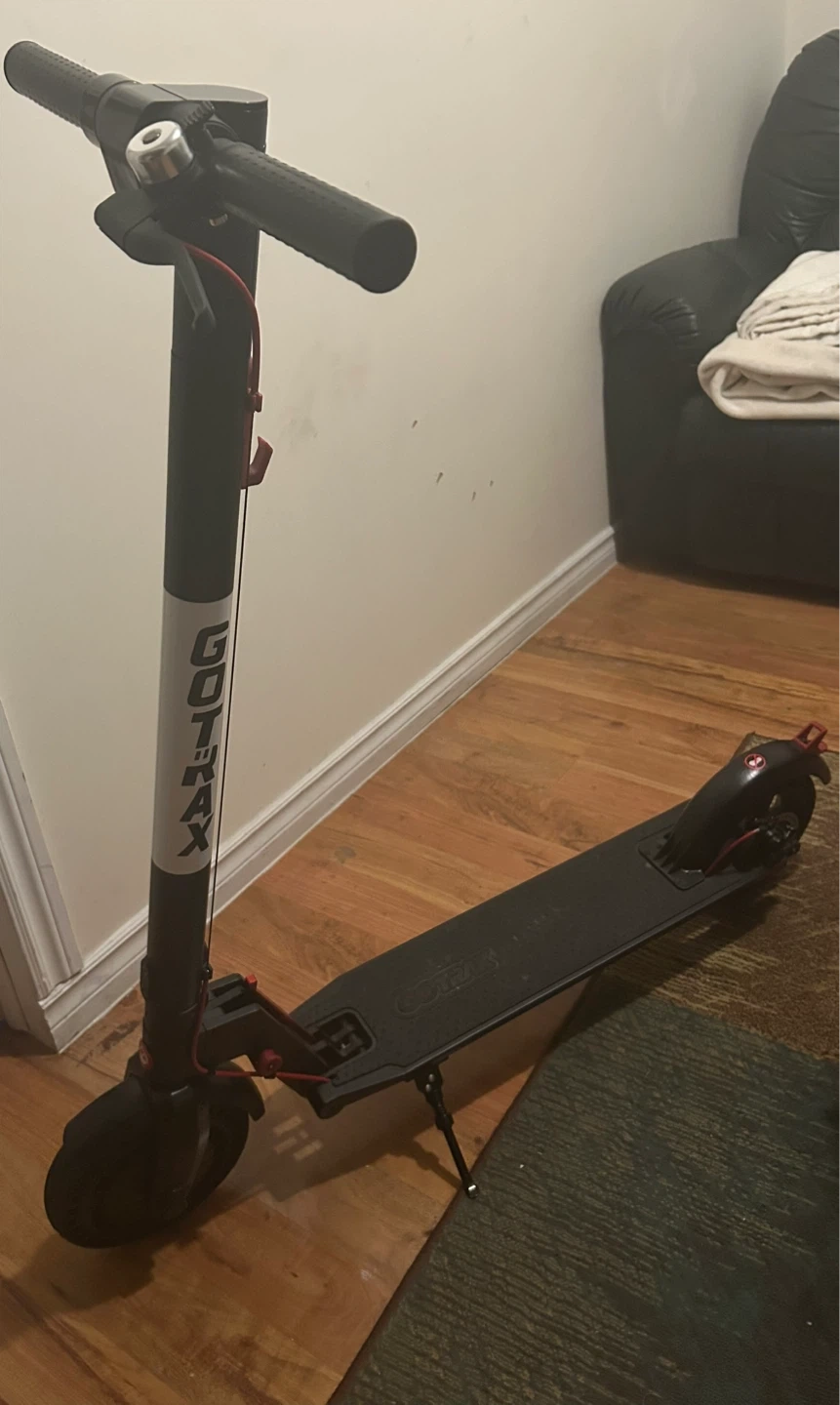 Selling a Gotrax electric scooter. It's in good condition and ready for a new owner. Great for getting around town! Stock wheels are swapped out for airless wheels that provide faster speed and more comfort. (open to trades)