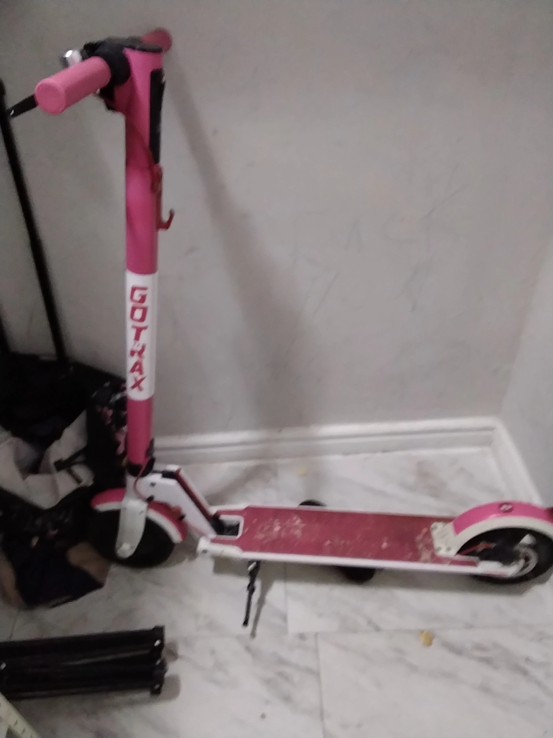 Selling a Gotrax electric scooter in pink. It's showing some signs of use, as you can see in the pictures. Great for getting around!