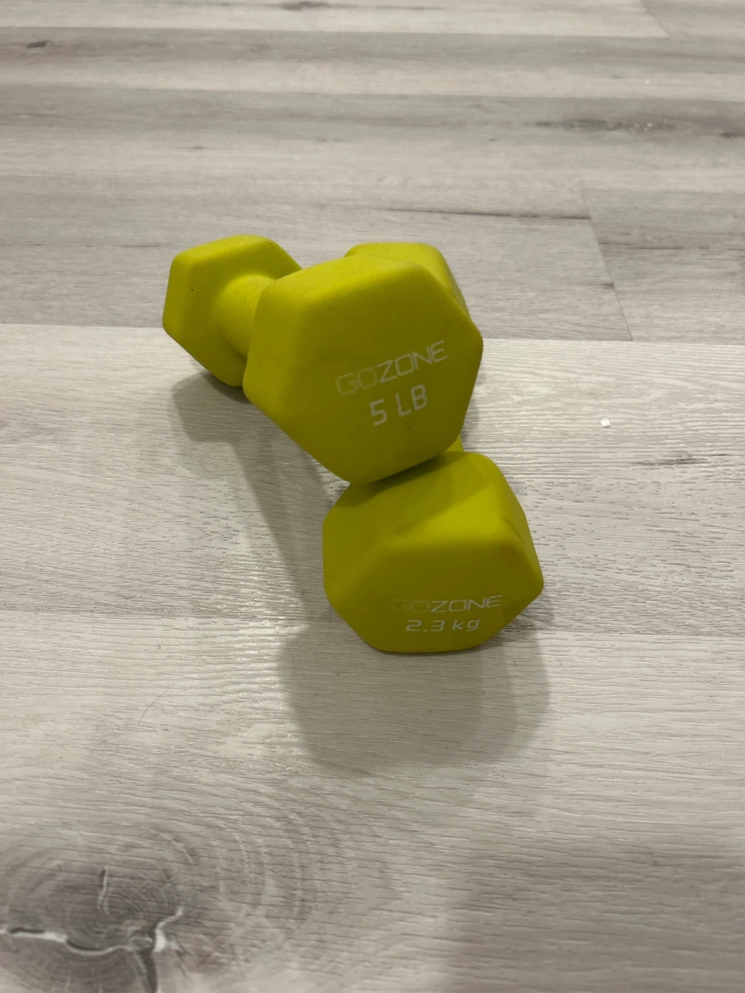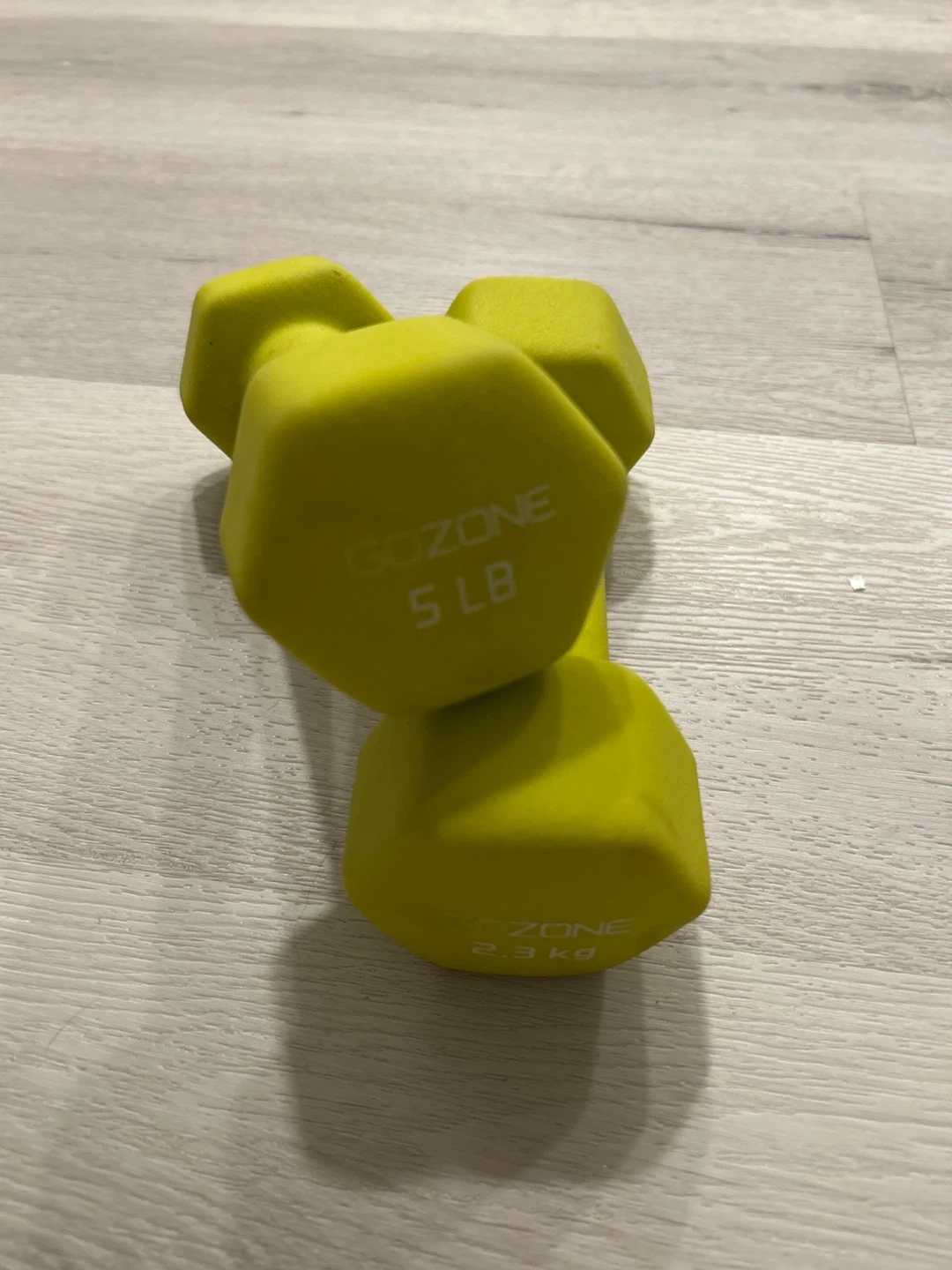Selling a pair of GOZONE 5 lb dumbbells in yellow. They're in great shape and ready for your home workouts! Pick up only