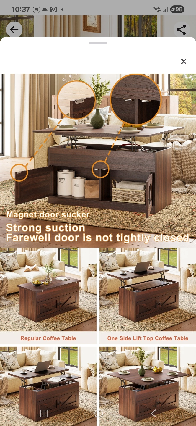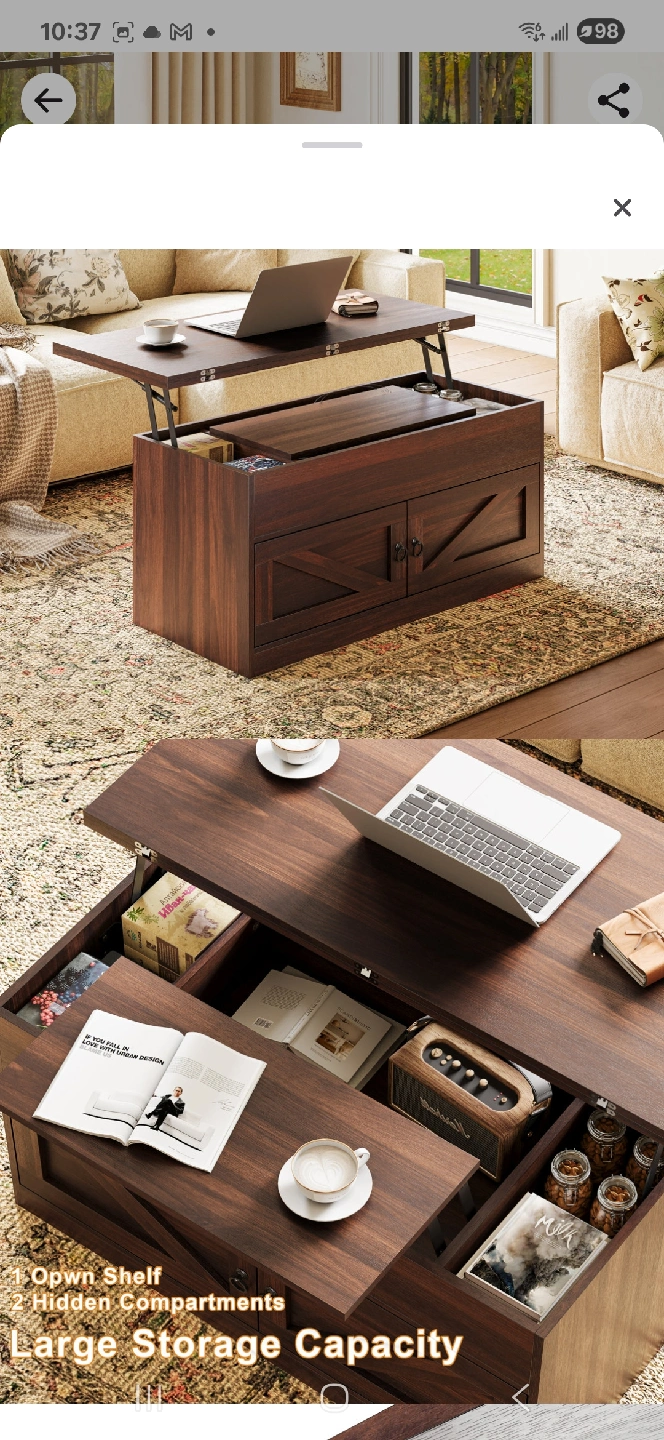 Wayfair Gracie Oaks lift-top coffee table includes hidden compartments and a storage space for keeping your belongings organized. Opens like a dining table. Has a dent as shown in the pictures but does not affect functionality. I have repacked the contents in the box. https://www.wayfair.ca/furniture/pdp/gracie-oaks-lift-top-farmhourse-coffee-table-with-storage-c112813028.html?piid=732501361 Pick up only at Wellesley and Ontario St