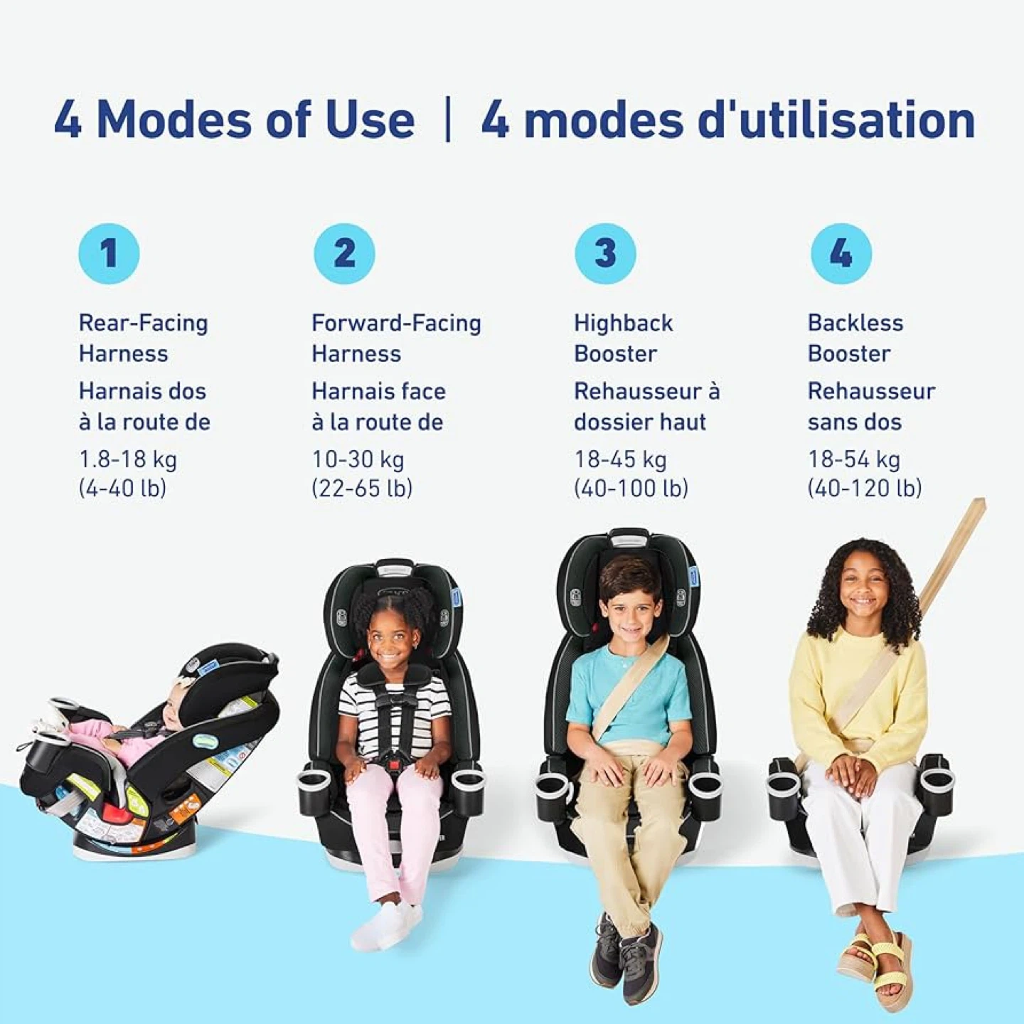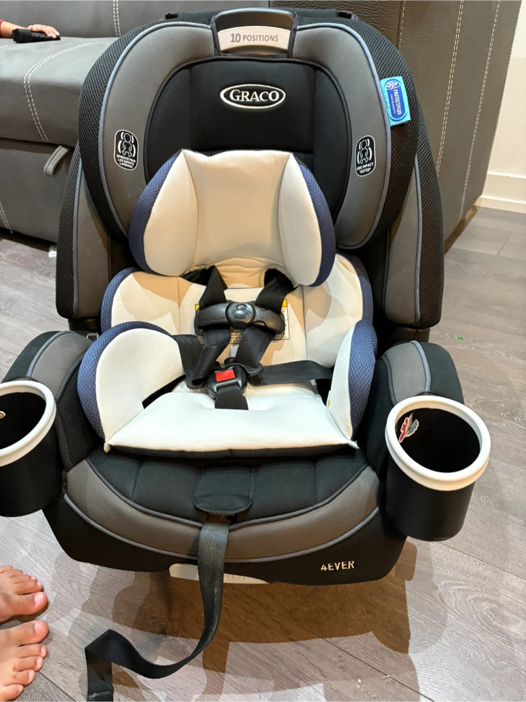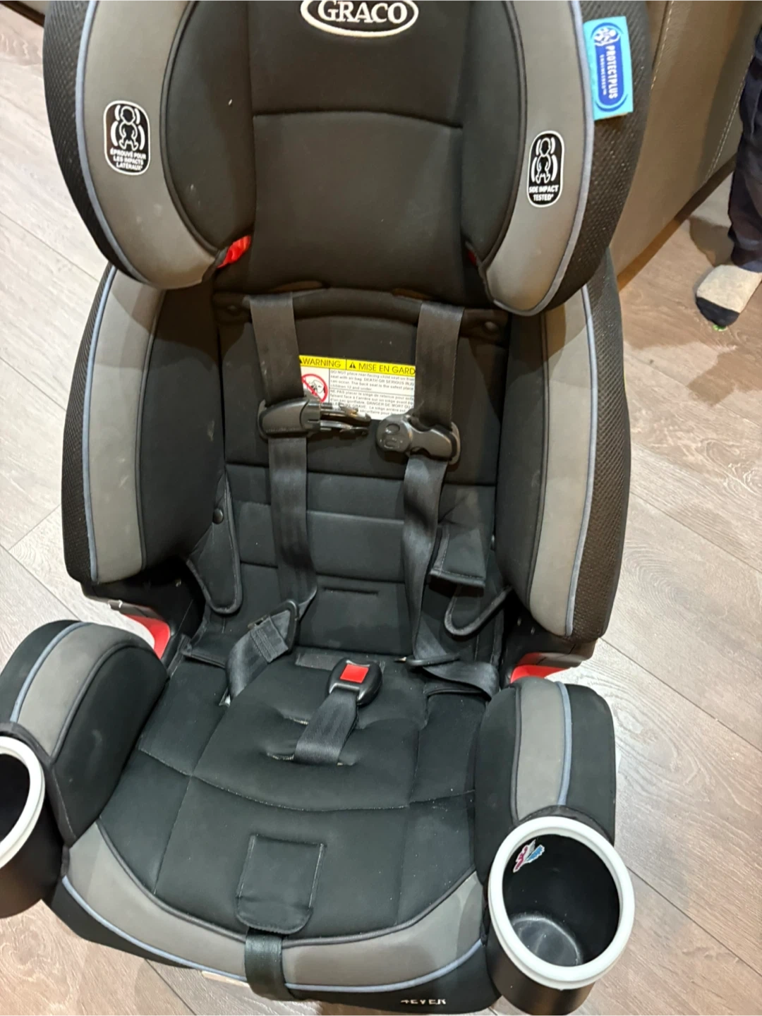 Selling a Graco 4Ever DLX 4-in-1 car seat! It's in great condition and ready for a new little one. This car seat adapts as your child grows, offering four modes of use: rear-facing harness, forward-facing harness, highback booster, and backless booster. It accommodates children from 1.8-54 kg (4-120 lb).