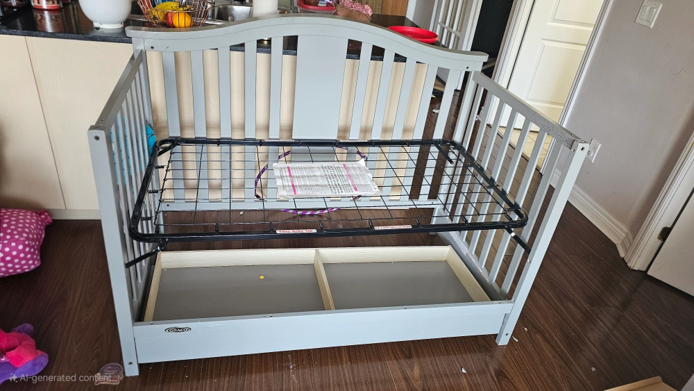 Selling a Graco baby crib in a lovely grey colour! It comes with a sturdy metal frame and a convenient drawer underneath for storage. Perfect for your little one's nursery