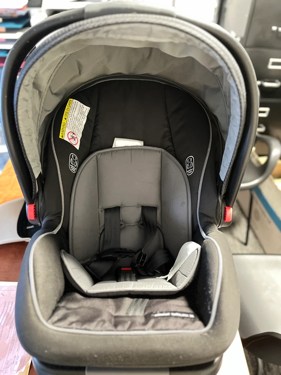 Selling a gently used Graco Click Connect infant car seat in black. It's in great condition and ready for a new little one! This car seat is compatible with Graco Click Connect strollers and bases.