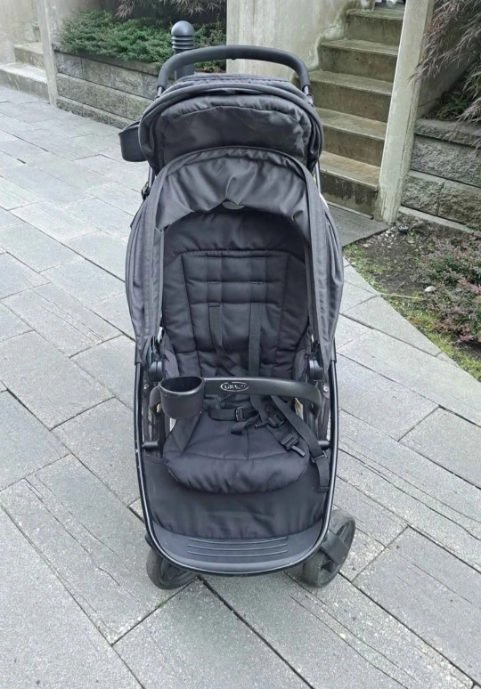 Selling a Graco stroller in black. It's in good condition and ready for a new family. Perfect for walks around the neighbourhood or trips to the park!