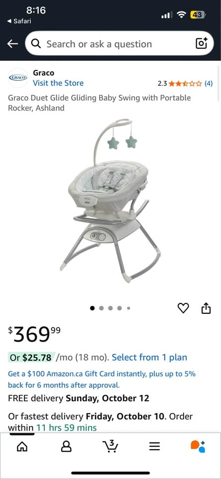 Graco Duet Glide Gliding Baby Swing with Portable Rocker