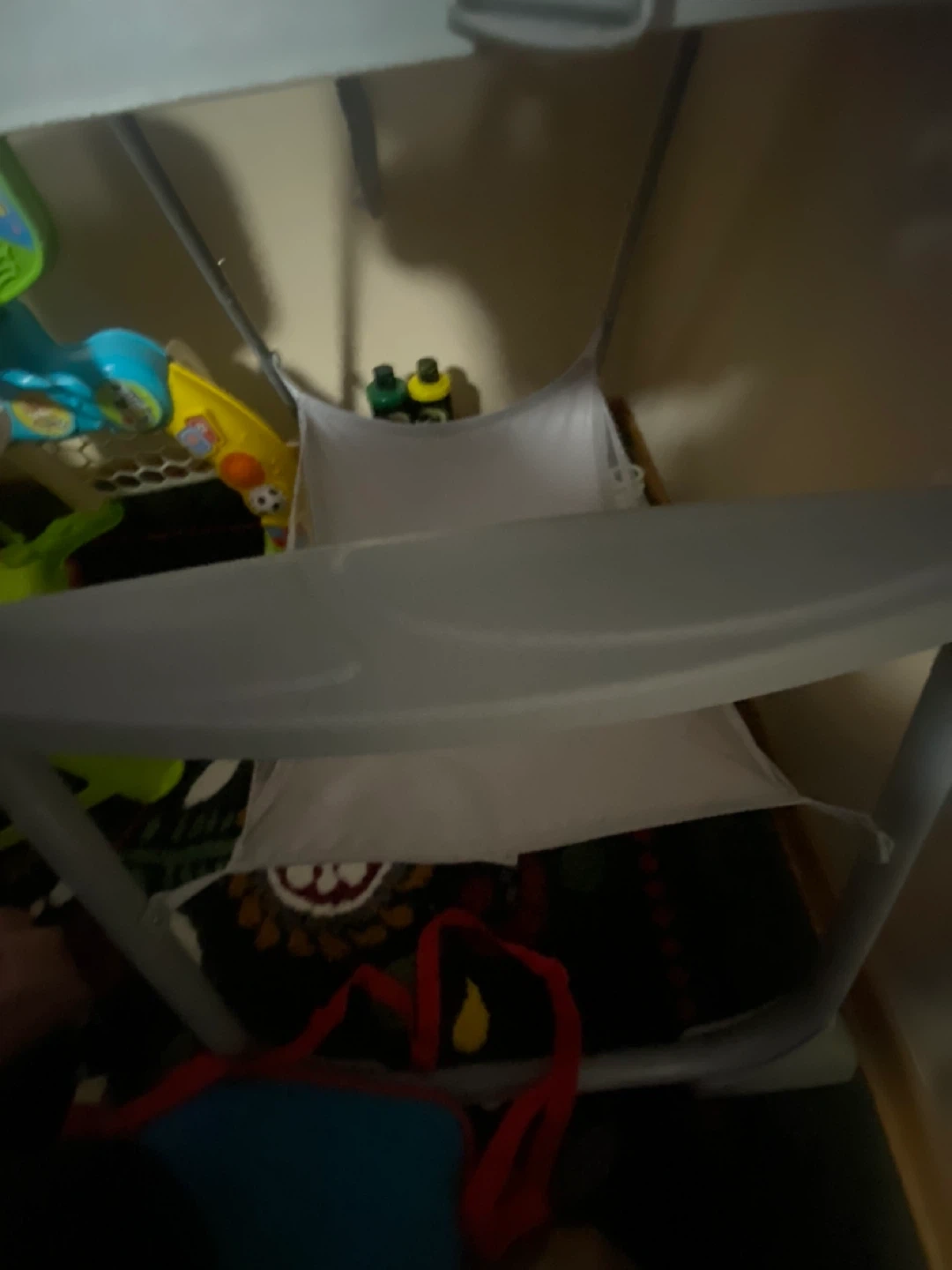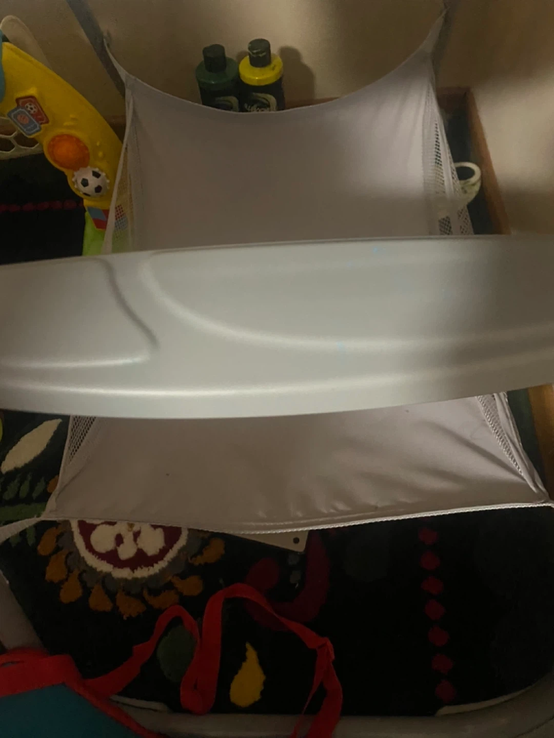 Selling a used Graco high chair! It's in good condition and ready for a new home. Features a grey frame and a patterned seat pad. It also has a storage net underneath for keeping baby essentials close by