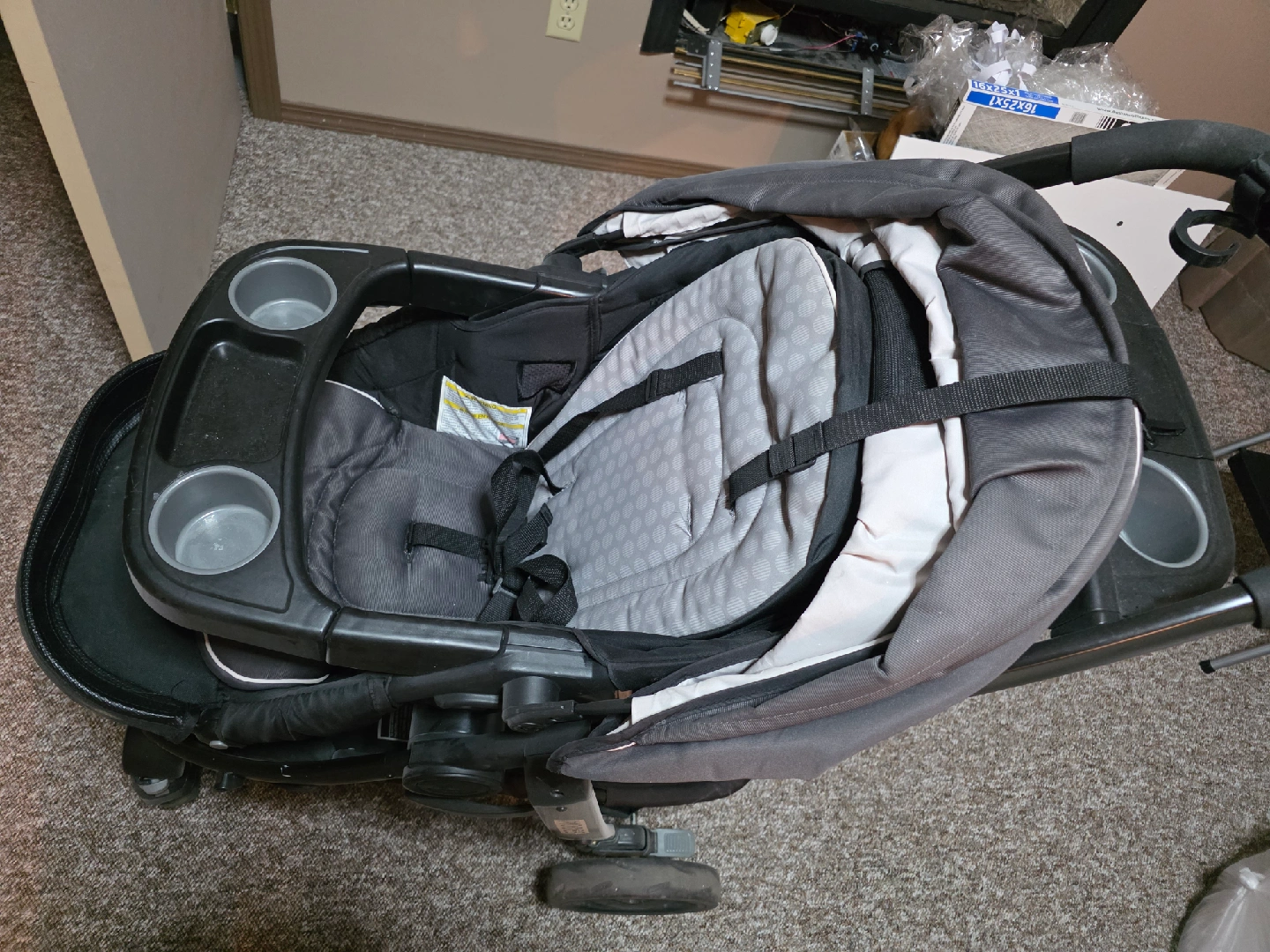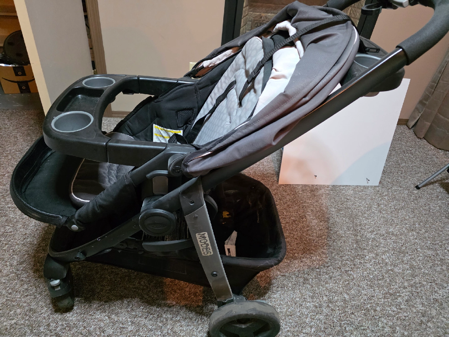 Selling a Graco Modes stroller in black and grey. It's in good condition and ready for a new home. Perfect for taking your little one out for walks and errands. It's a versatile stroller that can adapt to your child's needs as they grow! no car seat.