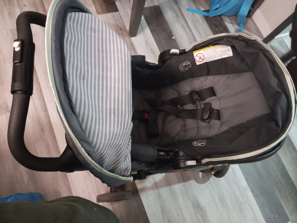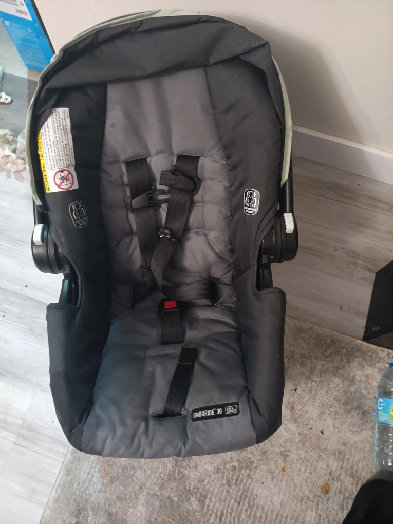 Selling a Graco Snugride 30 infant car seat and stroller combo. The manufacturing date is 2023 February 13. This combo is perfect for parents on the go!